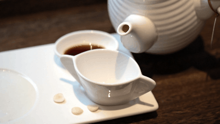 2、查色:细看汤色,呈现琥珀色、清澈见底、无漂浮物、无杂质;