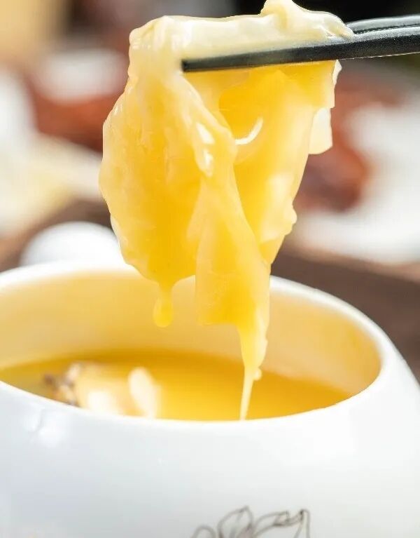 奶白色的汤,带来一股浓郁杏仁味,