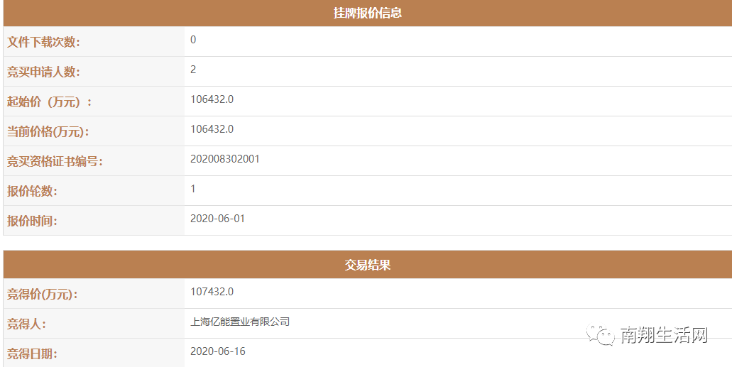 6月16日,上海亿能置业有限公司(其控股公司为祥源控股)以约10.74亿(107432万元)竞得嘉定区南翔镇JDC2-0202单元21-02地块,地块出让面21899.4平米,容积1.8,成交楼板价约2.73万/平米,溢价率0.9%。