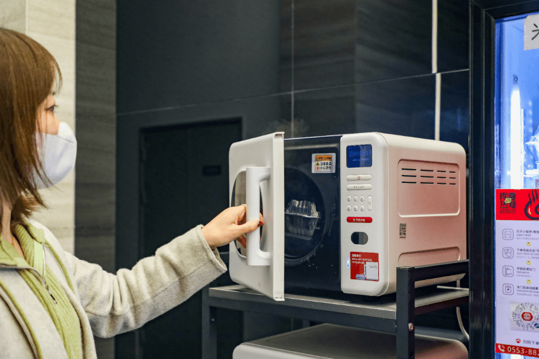 库盒属于柜式便利箱的细分市场,但却直击目前很多商务楼或者园区,工厂的痛点——带盒饭不方便,点外卖不健康,出去吃太麻烦。