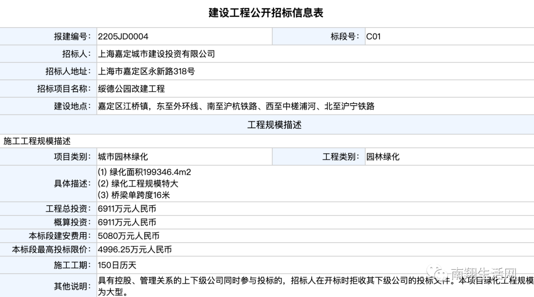 近日,南翔生活网从上海建工交服中心获悉:绿化面积高达199346.4平方米,绿化规模特大的绥德公园改建工程开始工程招标!