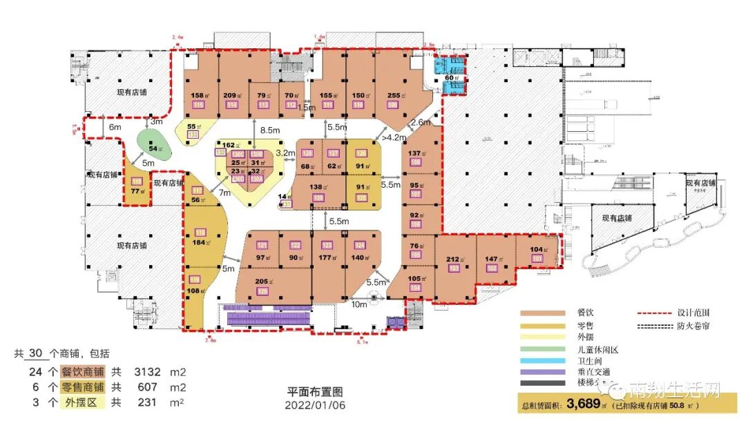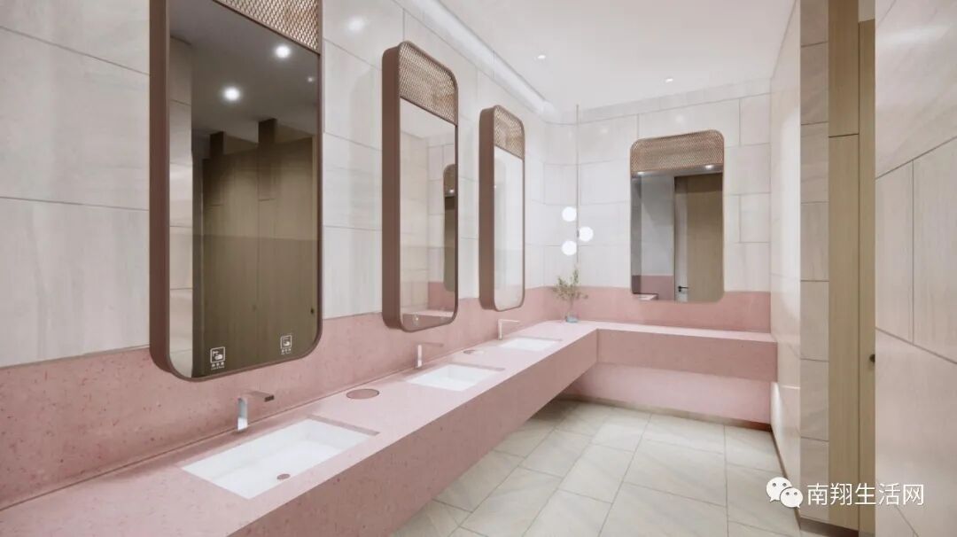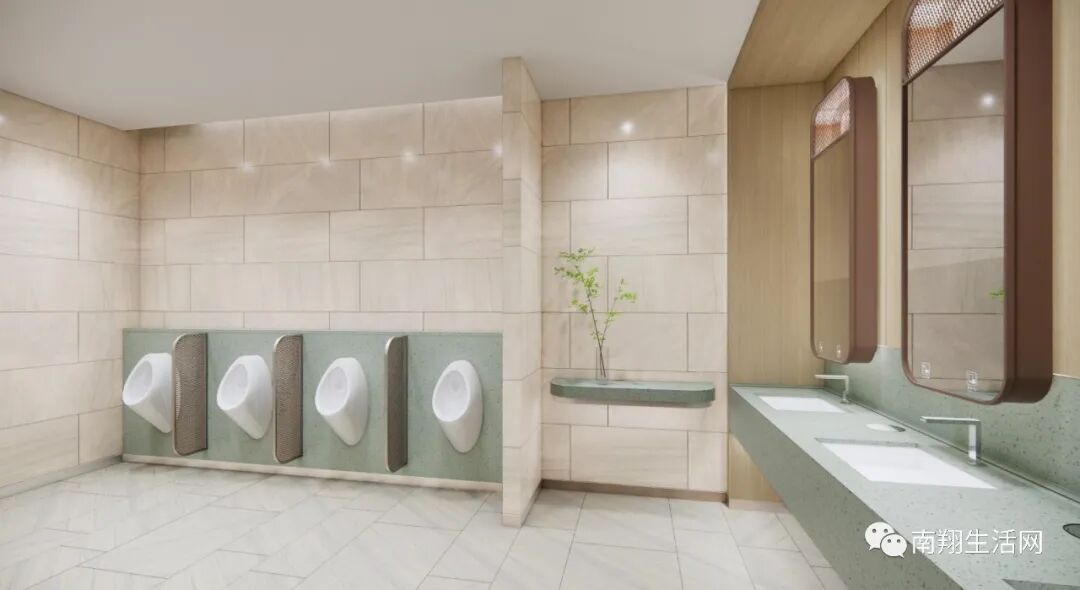 一个商场的品质,很大程度上是厕所决定的。本次改造中,设计师选用砂岩材质的墙面,和人造水磨石的台面。     通过低调淡雅的颜色区分男女卫生间,而圆弧形的面镜和砂岩材质的墙面形成哑亮对比,显得高级而温馨。       而这种高级感不仅仅体现在厕所等处,电梯轿厢也进行了重新设计,铜色不锈钢板、木纹铝板与水磨石地面相互映衬,简约中,显得大气高雅。     以下是平面布置图     以及南翔太茂区位图