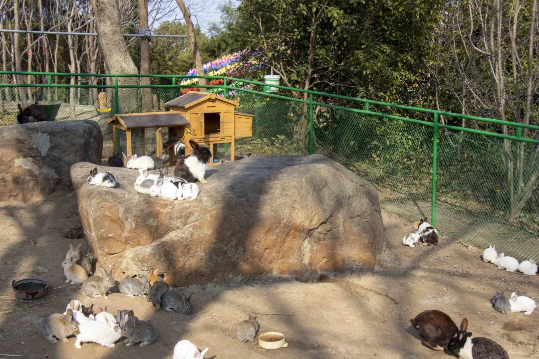 园区的小山坡上还住着一堆萌萌的小动物,有毛绒绒的小兔子、灵动的小山羊、美丽的孔雀、雉鸡、鸵鸟等等。不仅可以看他们在土地上自由活动,还可以买点胡萝卜奖励他们。