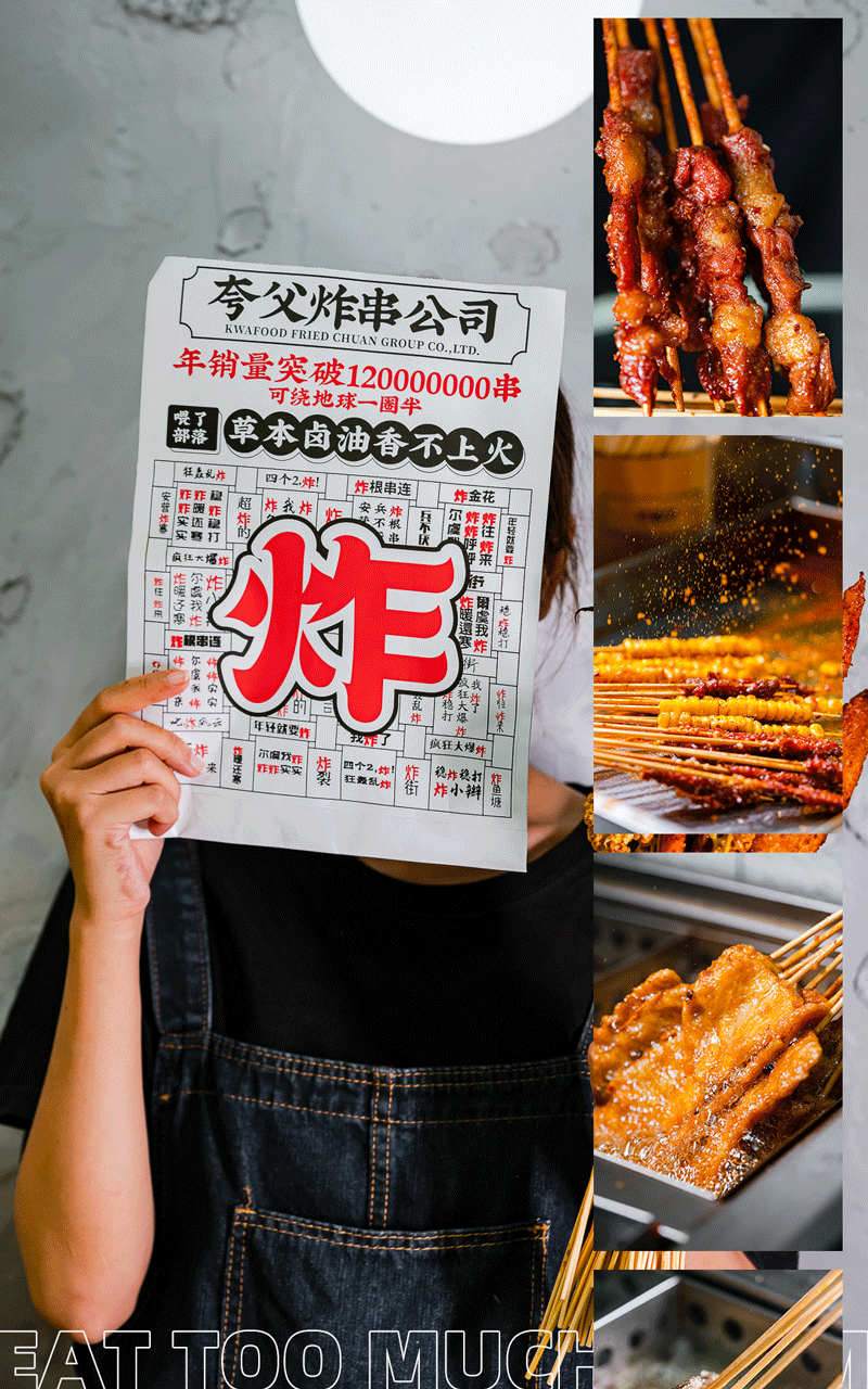 “草本卤油香不上火”,是夸父炸串的slogan。