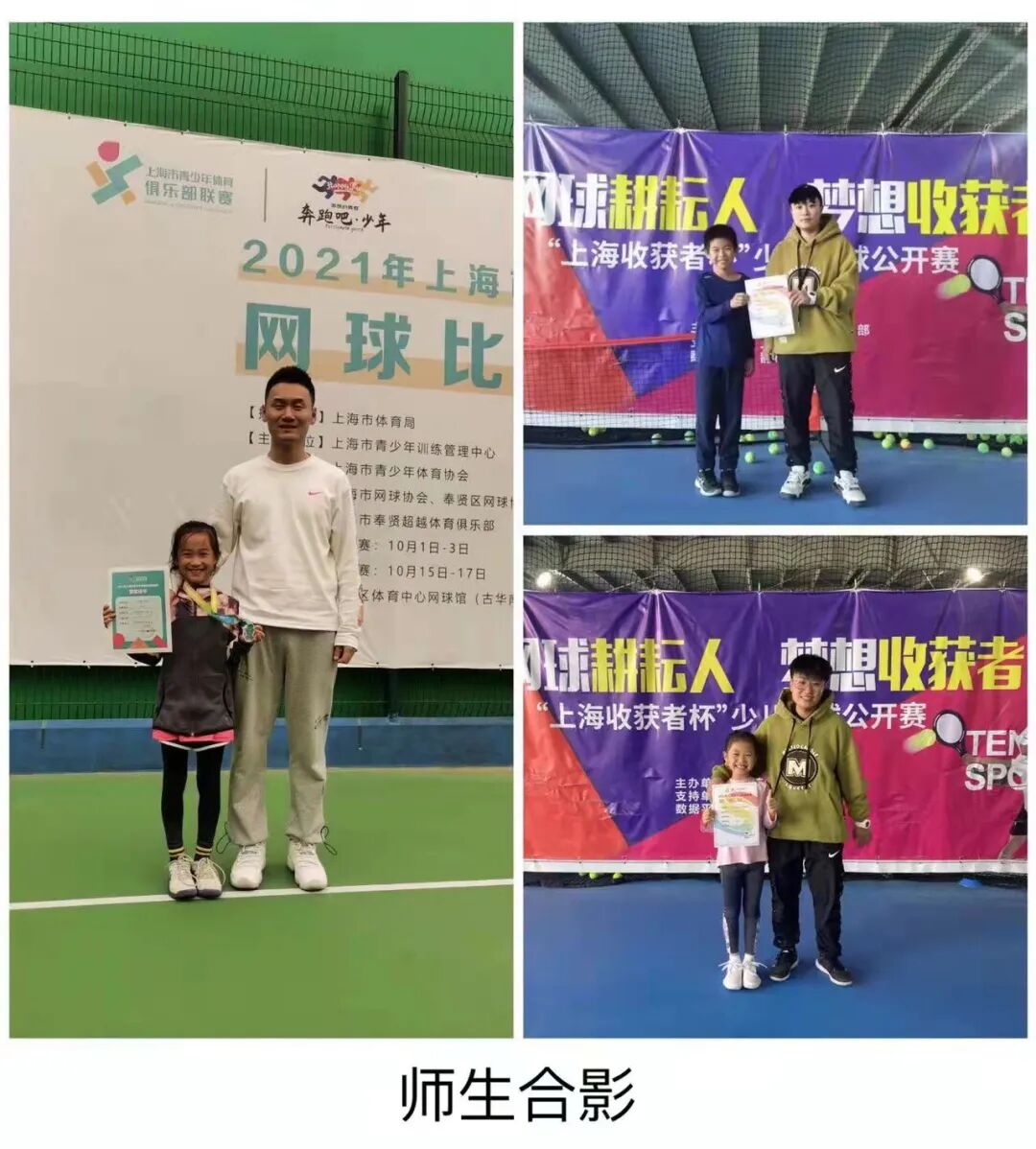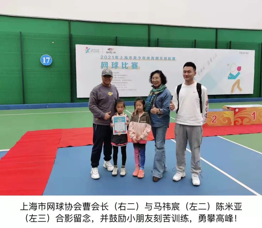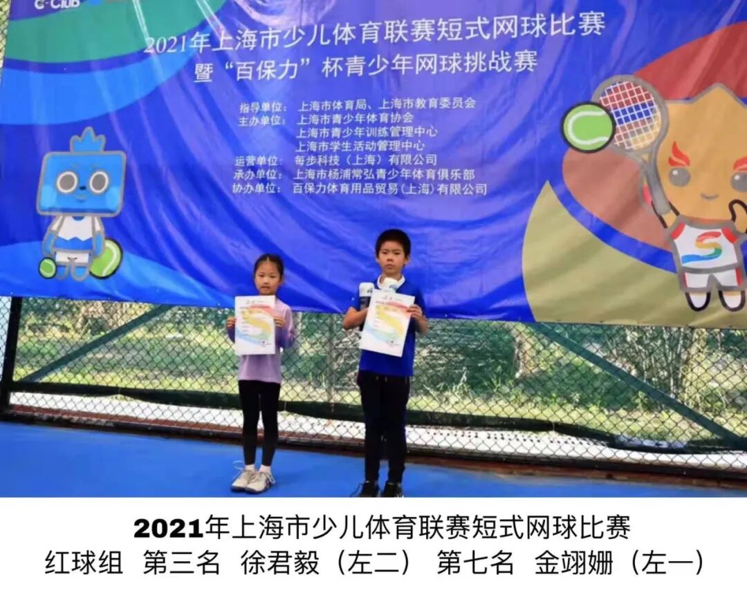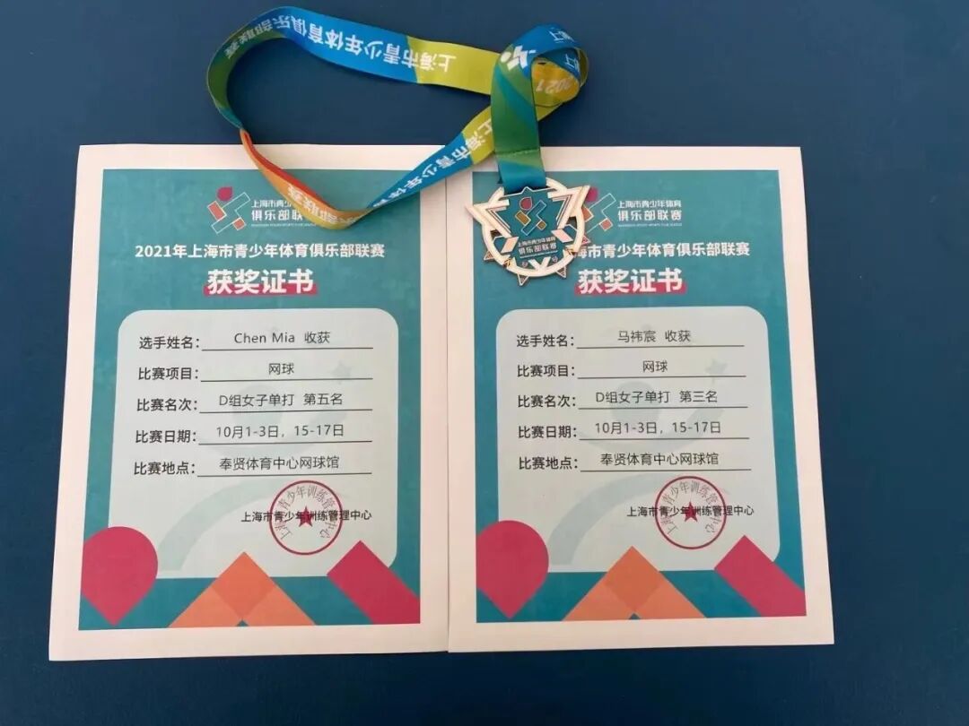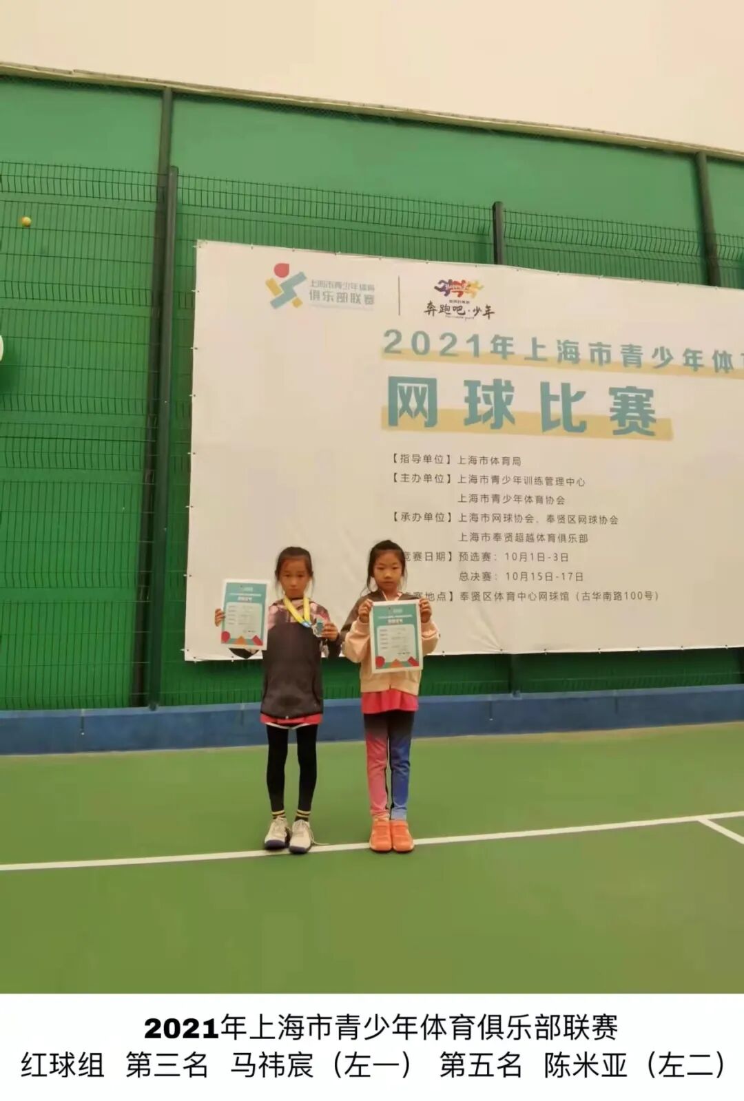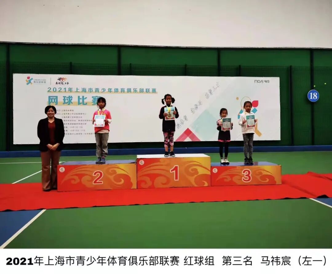 2021年,俱乐部在发展壮大的同时,小队员们在举办的各项赛事中取得了更加辉煌的成绩,其中在2021年10月在上海举行的上海市青少年网球俱乐部联赛中我俱乐部运动员马袆宸和Chen Mia从全市60多个俱乐部D组76名运动员中脱颖而出分别获得了第三名和第五名的骄人战绩,另外2021年上海市少儿体育联赛中,我俱乐部运动员徐君毅和金翊姗分别获得了红球组第三名和第七名的历史最好成绩。