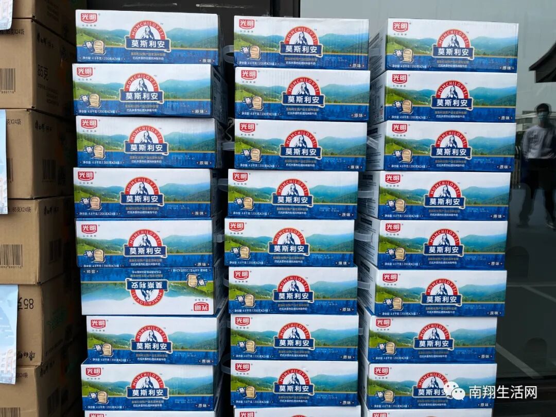 而于此同时,为一线抗疫人员助力的生活物资采购组也不辱使命,四处筹集了3000余箱的牛奶、酸奶、果汁、方便面、饼干、自嗨锅等生活物资。