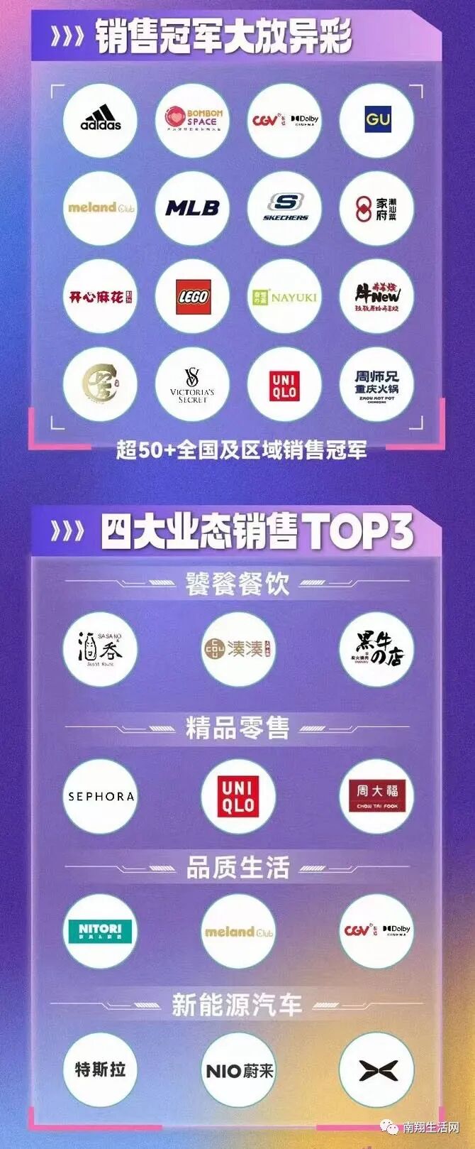 除了阿迪达斯领衔50加全国及区域销售冠军外,酒吞/丝芙兰/nitori/特斯拉分别成为餐饮/零售/生活/汽车业态的冠军!