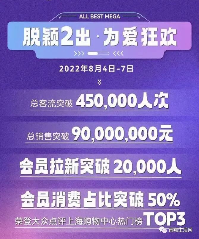 南翔生活网获悉:在刚刚过去的七夕佳节,恰逢开业两周年的南翔印象城MEGA四日总斩获了45万客流、9000万销售额、近50家全国及区域销冠店的惊人战绩。