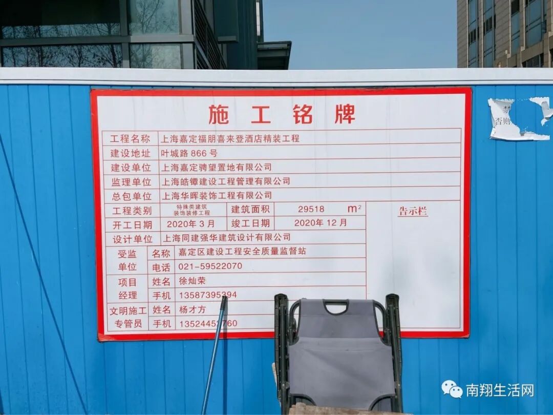 室外的“上海嘉定福朋喜来登酒店”招牌已经挂出