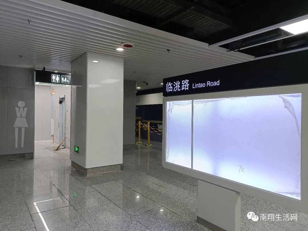 从嘉闵高架来到曹安路,沿线各个站点都已开始内部装饰,此前很多网友担心施工进度是否来得及。从现场情况看,速度非常快,虽然就像上面的临兆路站的一号出口logo还没有安装灯箱,但是其对面二号出口已经基本完工。