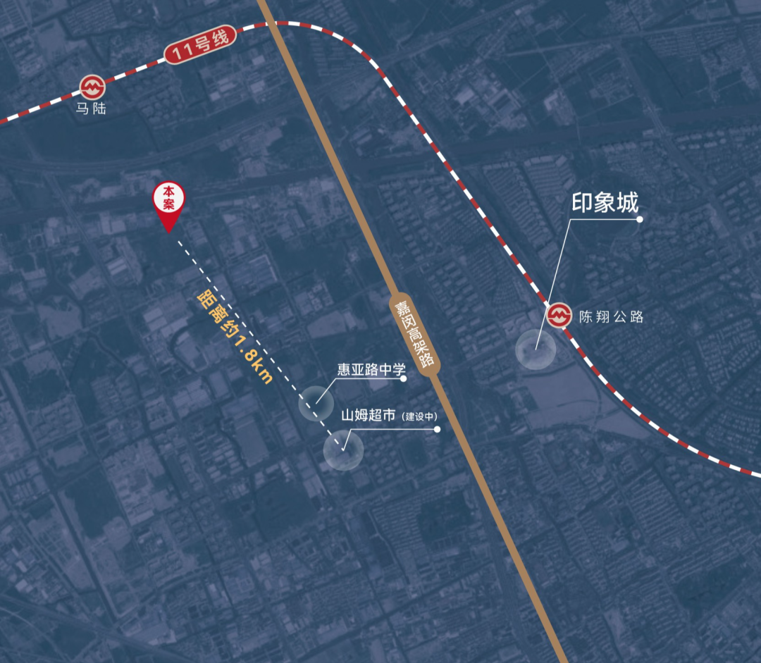 而商业配套方面,除了已经建成的上海最大单体商业体——南翔印象城MEGA外,距离柏悦翔湾直线距离仅约1.8KM就是正在建设中的山姆会员店!