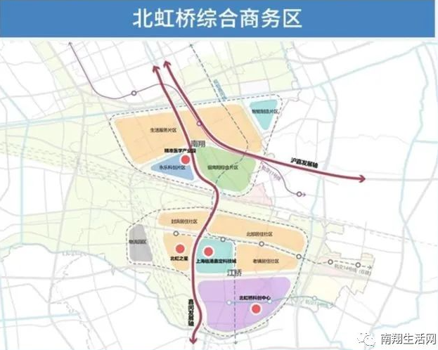 根据上海嘉定发布的嘉定区“十四五”规划纲要图解,其中很大亮点就是:南翔被划归于北虹桥综合商务区。