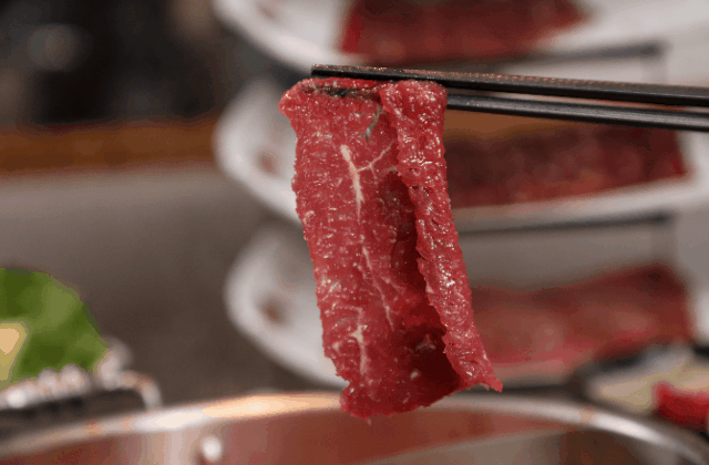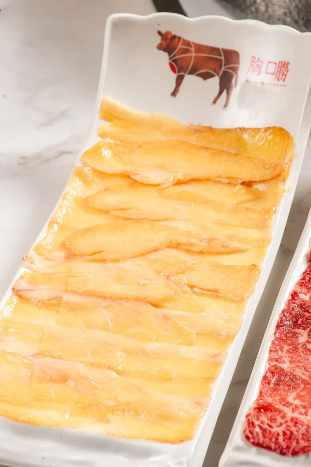 左庭右院的鲜牛肉当之无愧的足够新鲜,牛肉新鲜的标准之一就是360°旋转挂盘不倒。并且每块牛肉都拥有自己的姓名,吊龙、鲜牛肉、肥胼、匙柄······让你吃到过瘾。