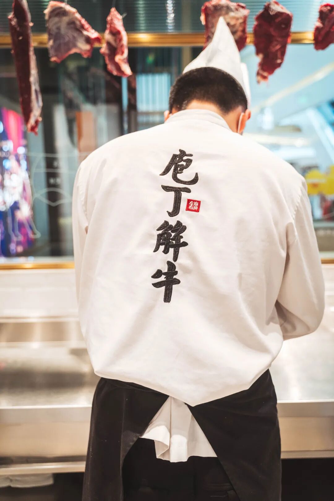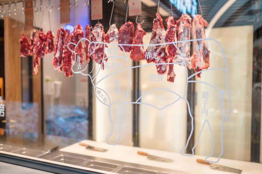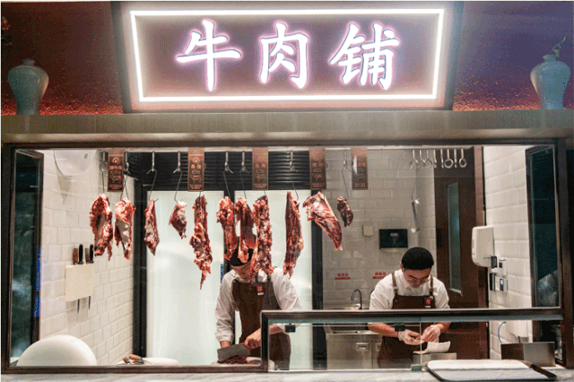 透过玻璃窗能清楚看到师傅们切肉的全过程