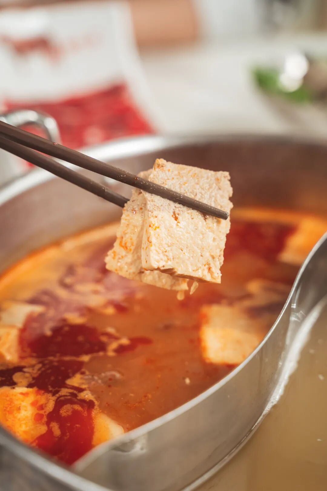 选取非转基因黄豆、黑豆;采用熟浆点浆工艺,豆香浓郁;耐煮且易入味,口感细腻柔滑,煮久之后吸满汤汁,犹如再吃另外一块牛肉。