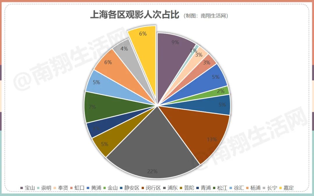 总的观影人次方面,嘉定以约264万人次占比为6%,排名全市第12位。
