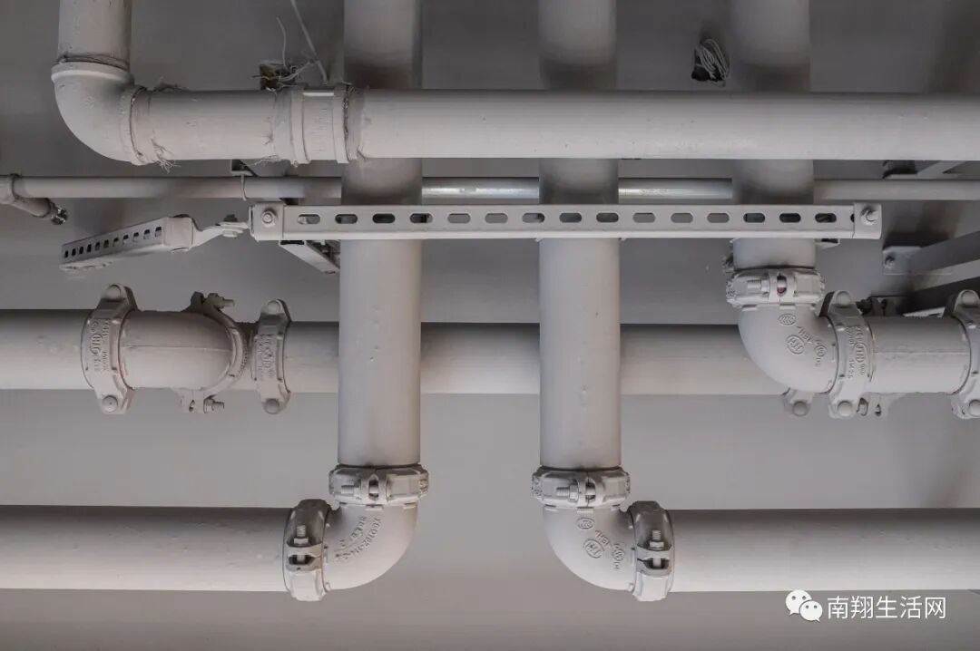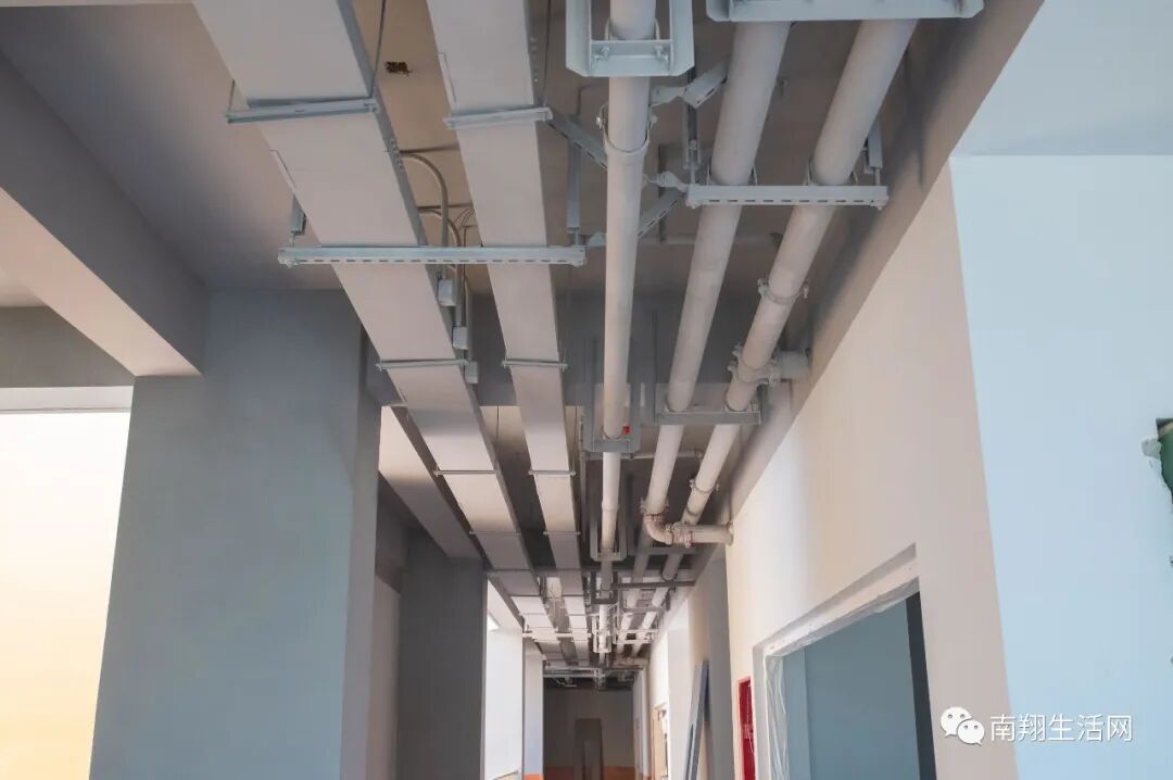 说到太阳能,幼儿园内部的各种管道并没有进行“封闭”而是采用工业风,直接灰漆展现在孩子们面前。