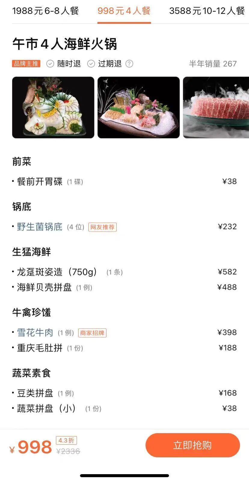 配上浓郁清香的松茸锅底,再来这样一份每天新鲜空运的海鲜,一烫一口,入口即化,这才是海鲜该有的样子。