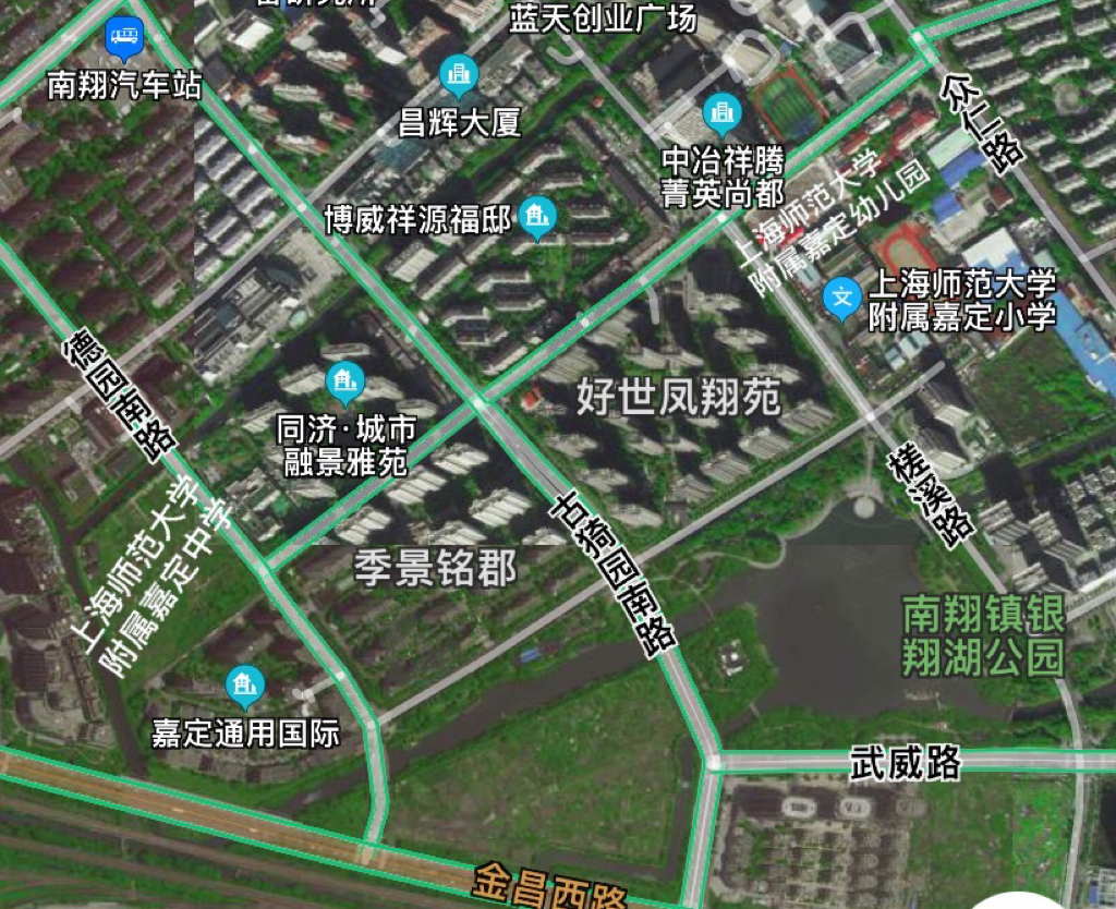 说到上师大附小、幼儿园,就不得不说上海师范大学附属嘉定中学了(以下简称上师大附中)。因为这所中学就在上师大附幼以及上师大附小不远处的德园南路上,看地图就是隔了“两条街”而已。   南翔生活网已经于稍早前的7月11日,对该校的建设进展进行了空中俯拍!   上师大附中新建工程同样位于南翔银南翔板块,嘉定区东至德园南路,南至基地边界,西至横沥河,北至翔二河。
