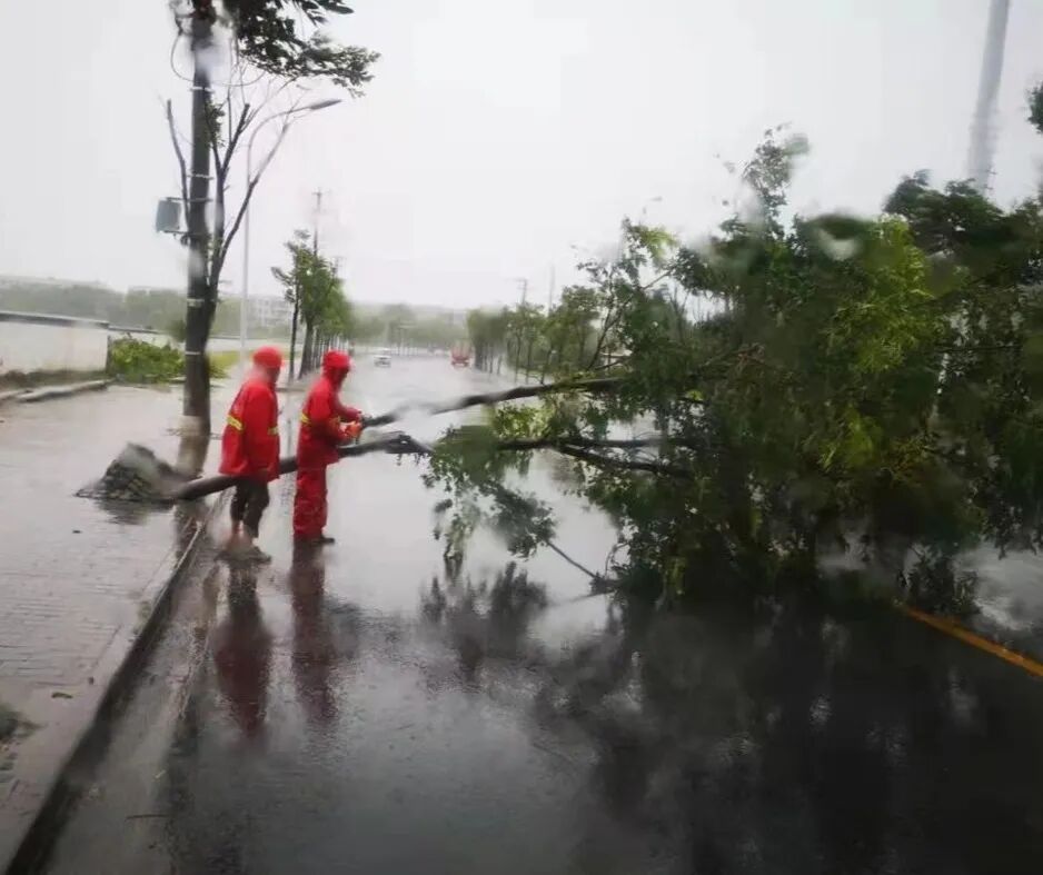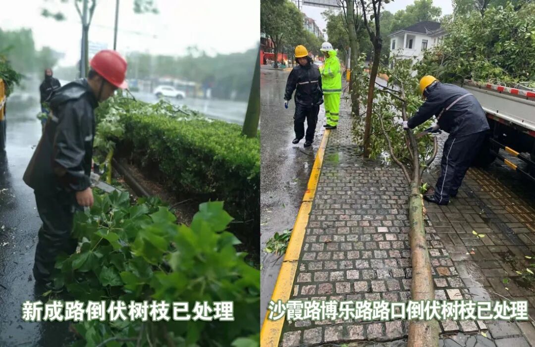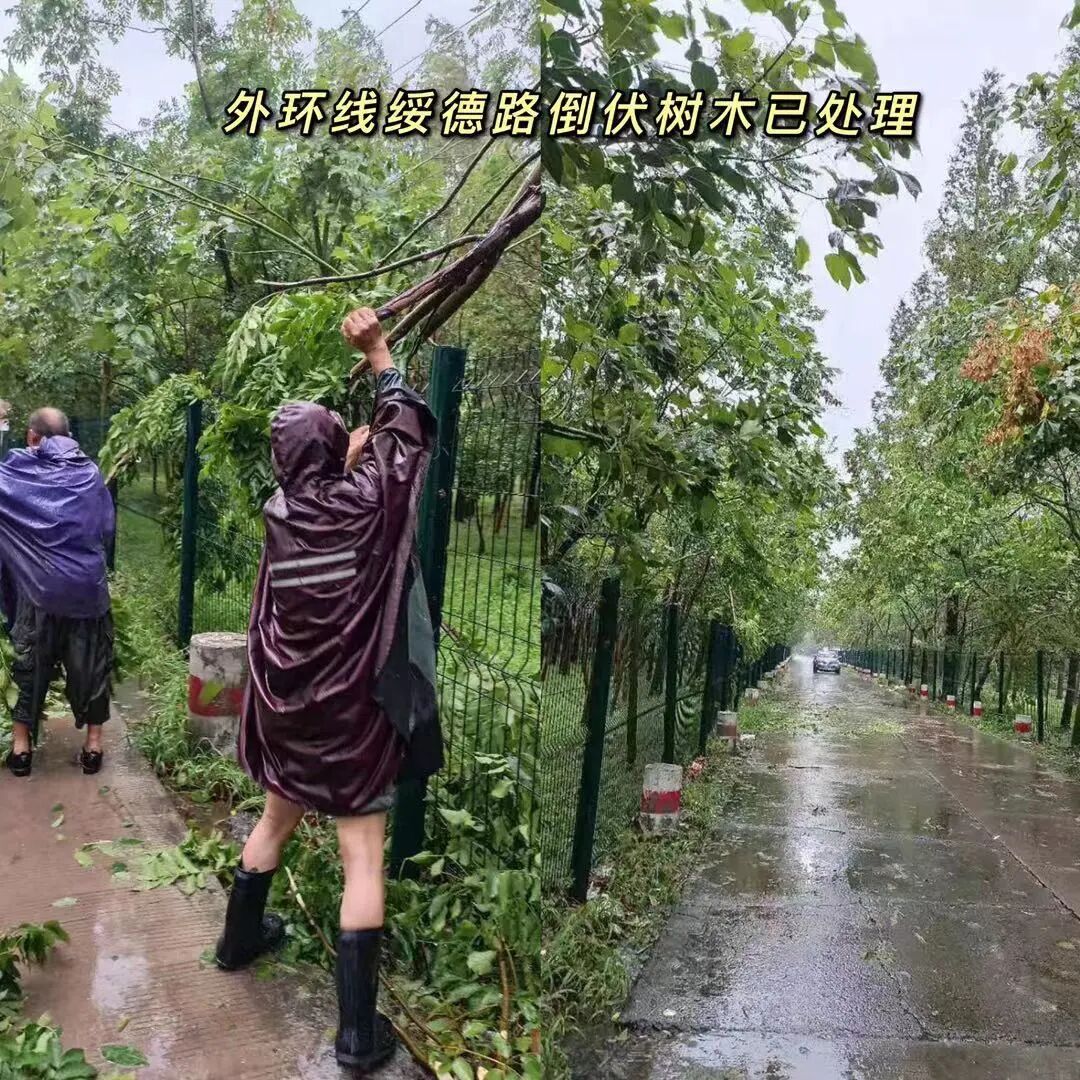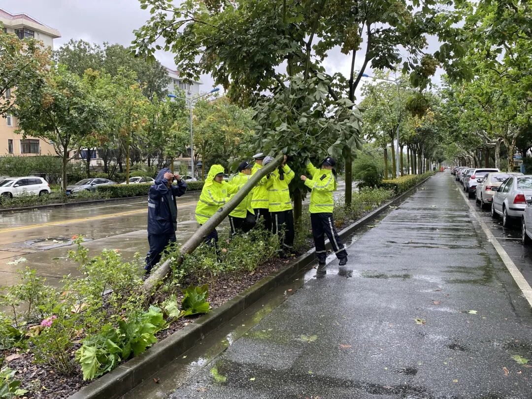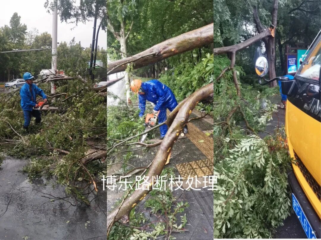 区绿化部门迅速出动,及时处置行道树、公园树木的倒伏与断枝,确保交通畅通。