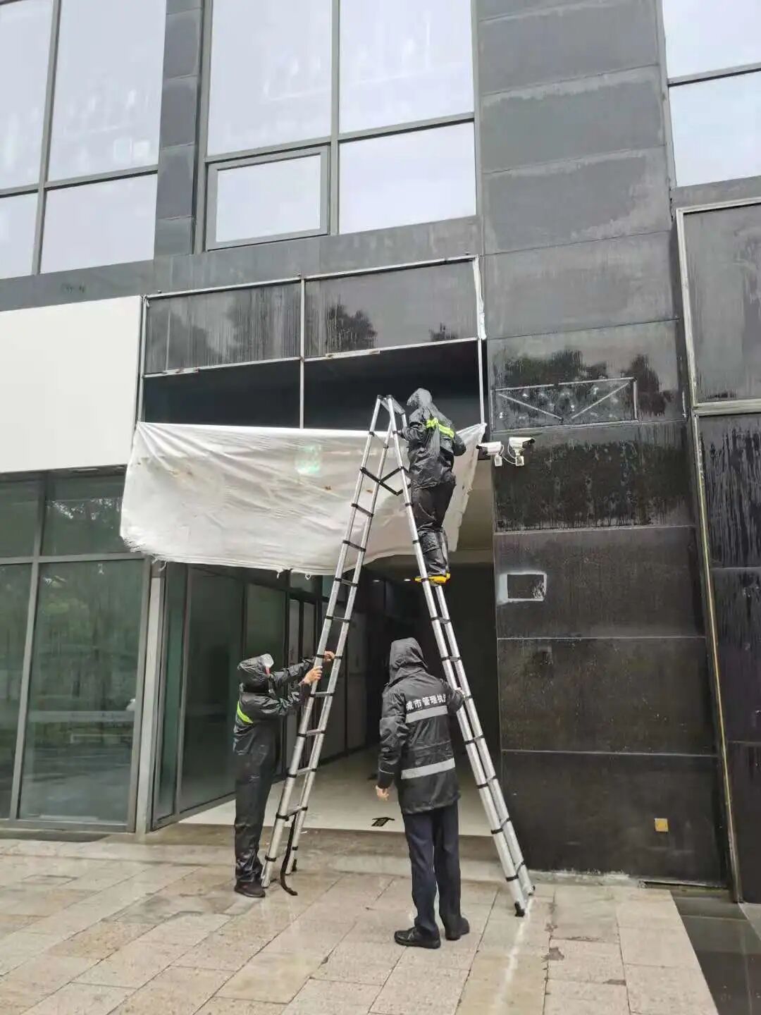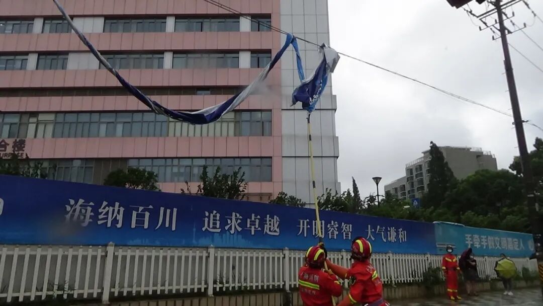 7月25日11时30分,南翔站辖区内某小区外墙玻璃被风吹变形,消防员到场后立即对窗户采取保护措施,防止其坠落,并将螺丝拧掉,将窗户拆下拿进屋内,防止造成进一步危险。