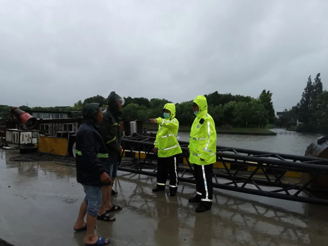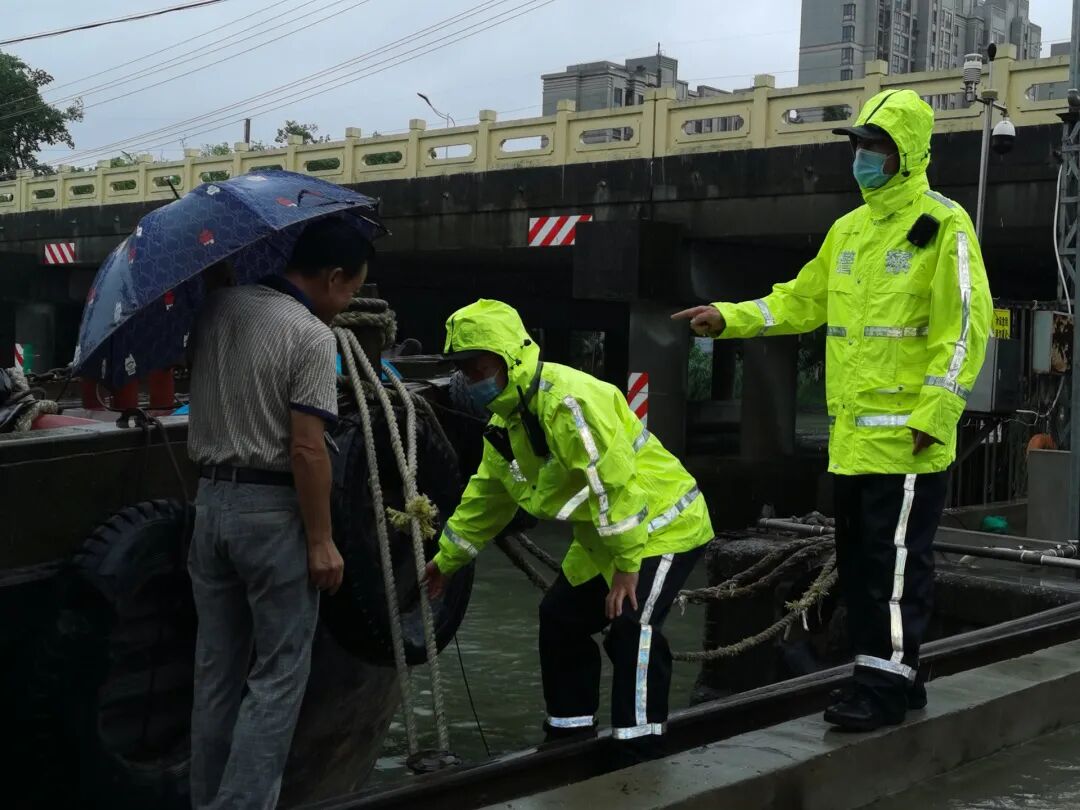 水上所民警在码头对船舶停泊情况开展安全检查,细致查看各项防汛抗台措施落实情况,及时消除安全隐患。
