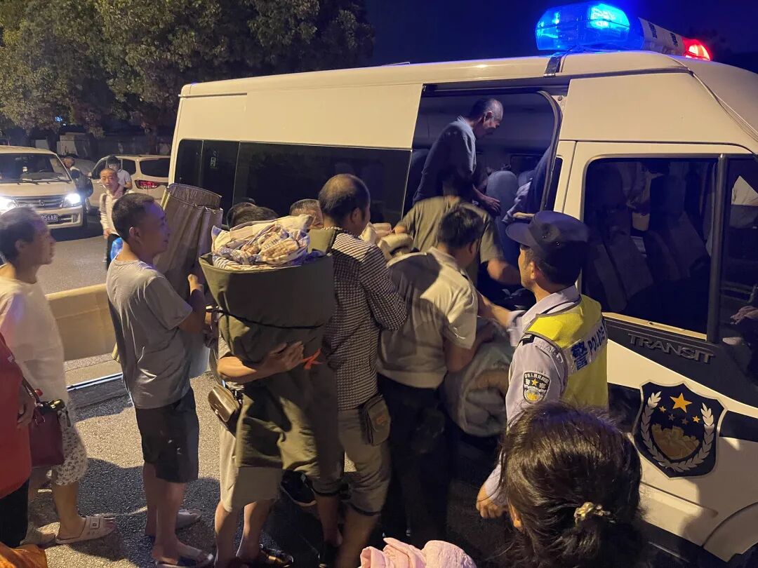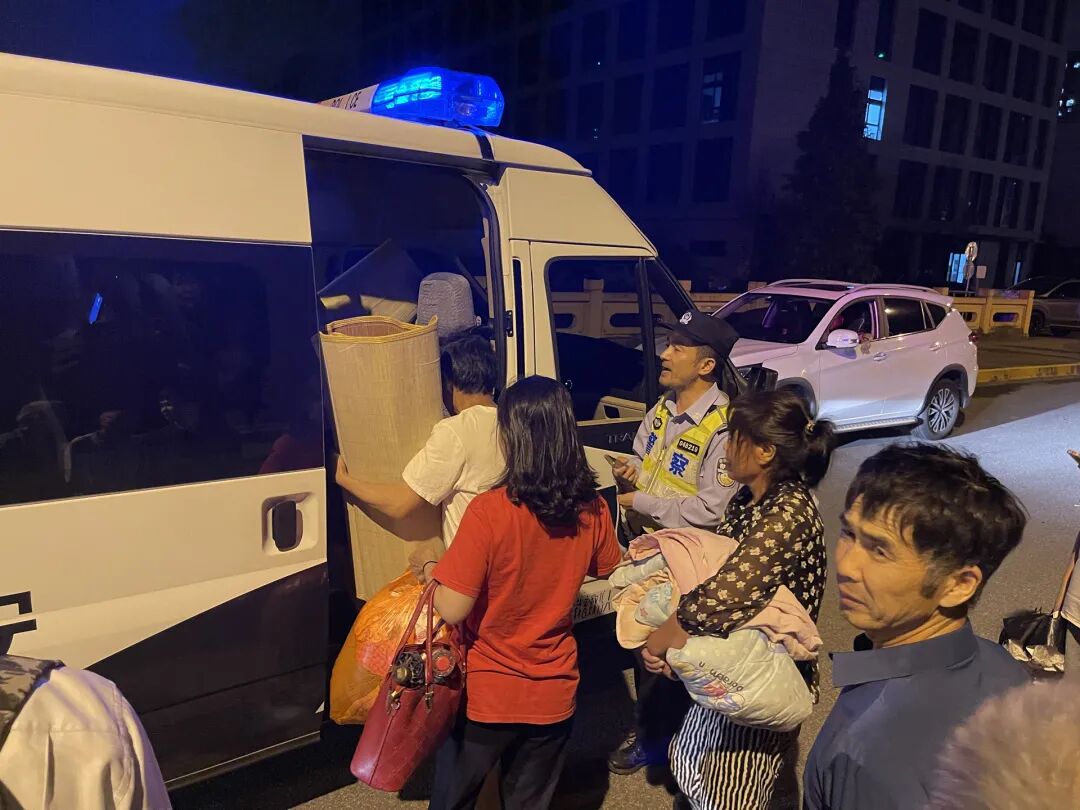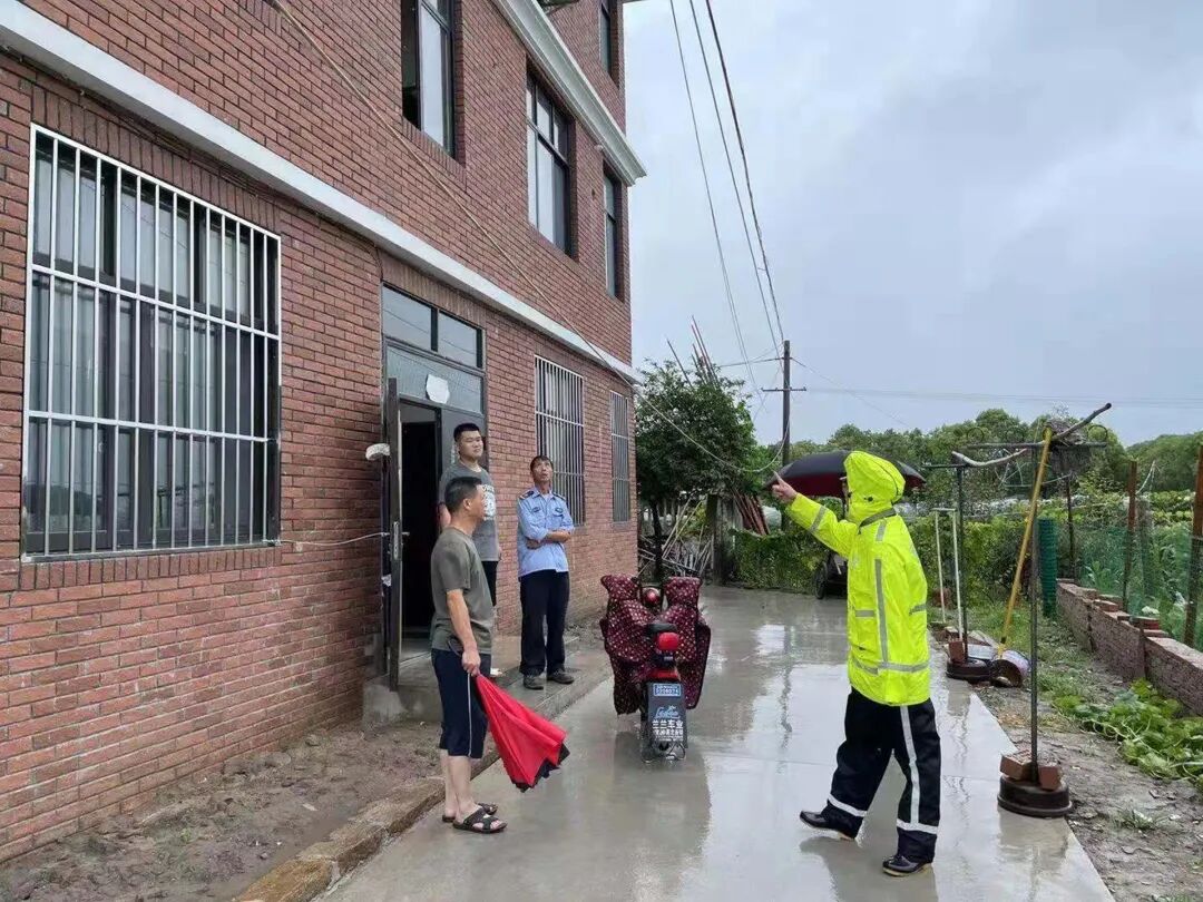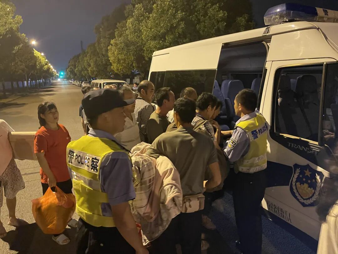 娄塘所组织民警驾驶警车护送辖区蔬菜危棚住户转移到指定避险安置场所。