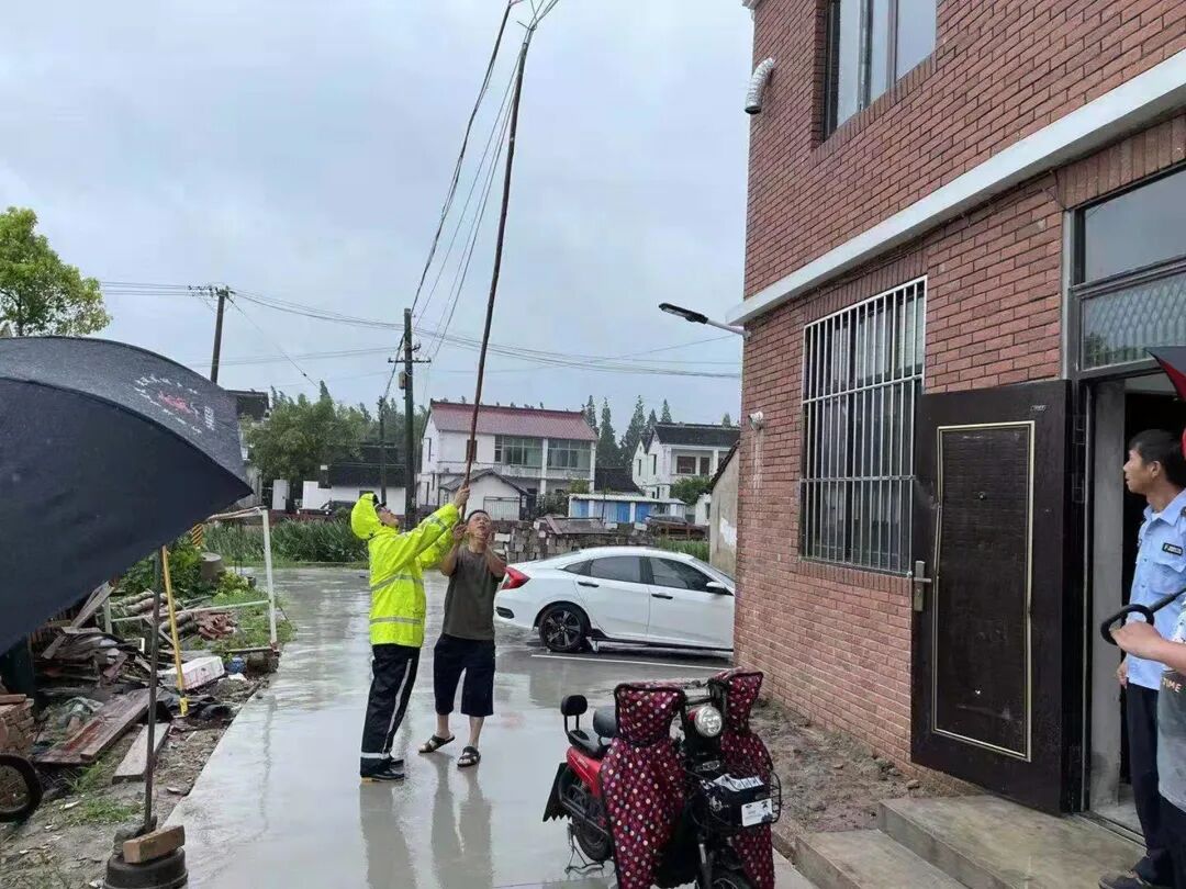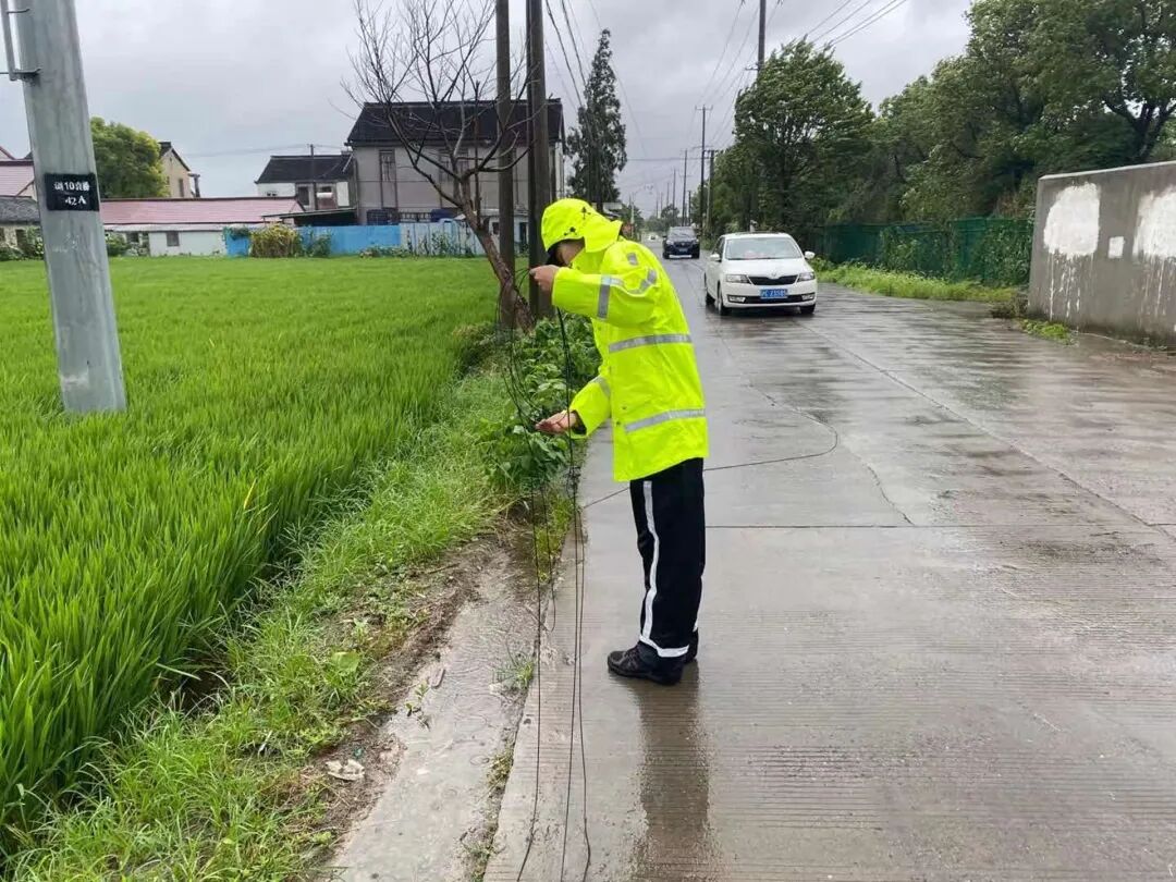 唐行所民警工作中发现辖区毛桥村一农宅周边电线被台风吹落,存在安全隐患,当即会同村居干部紧急处置。