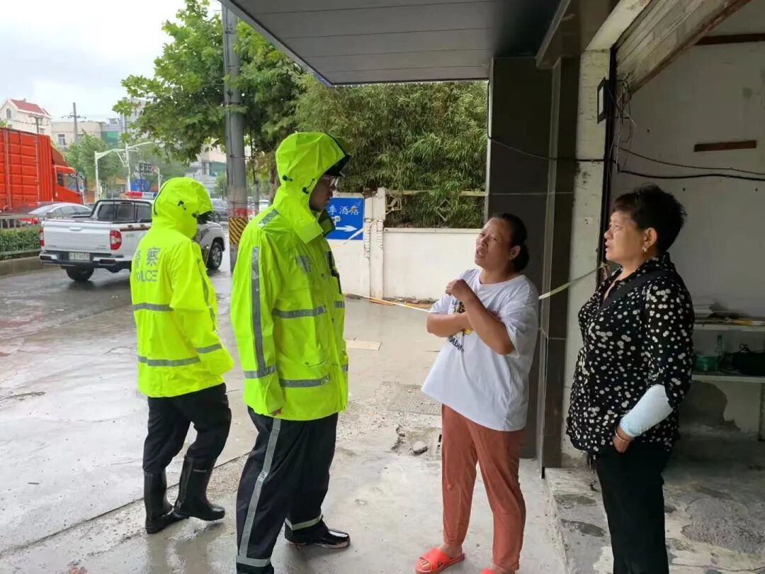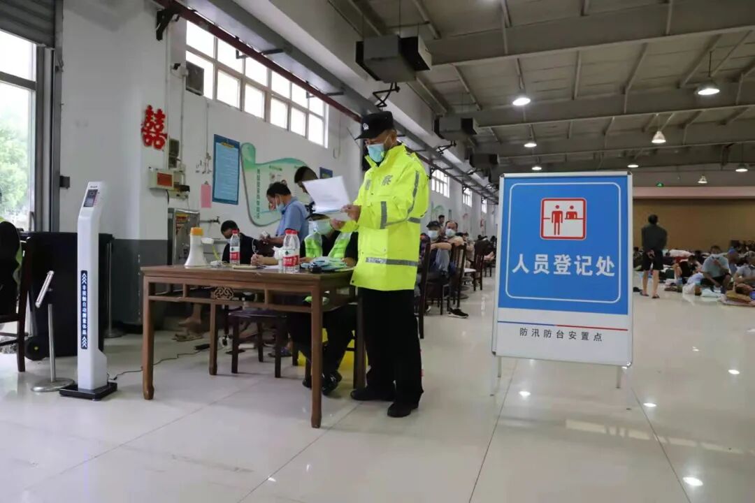 马陆所民警对辖区防台疏散点开展安全检查,查看防疫人员登记手册,提醒疏散群众看管好个人贵重物品。