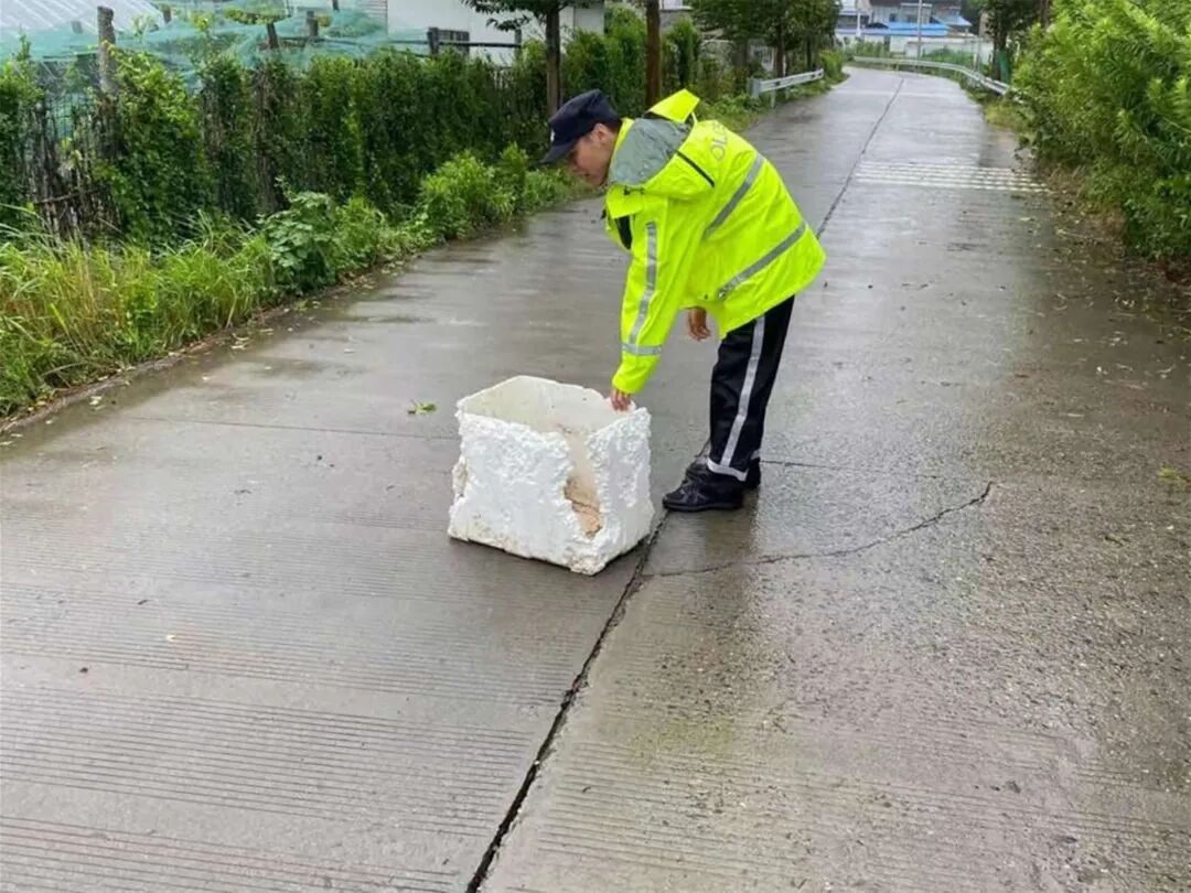 华亭所民警徐炯、李箕国在辖区内巡逻时发现路面有吹落的电线和散落的杂物,及时进行清理,消除安全隐患。