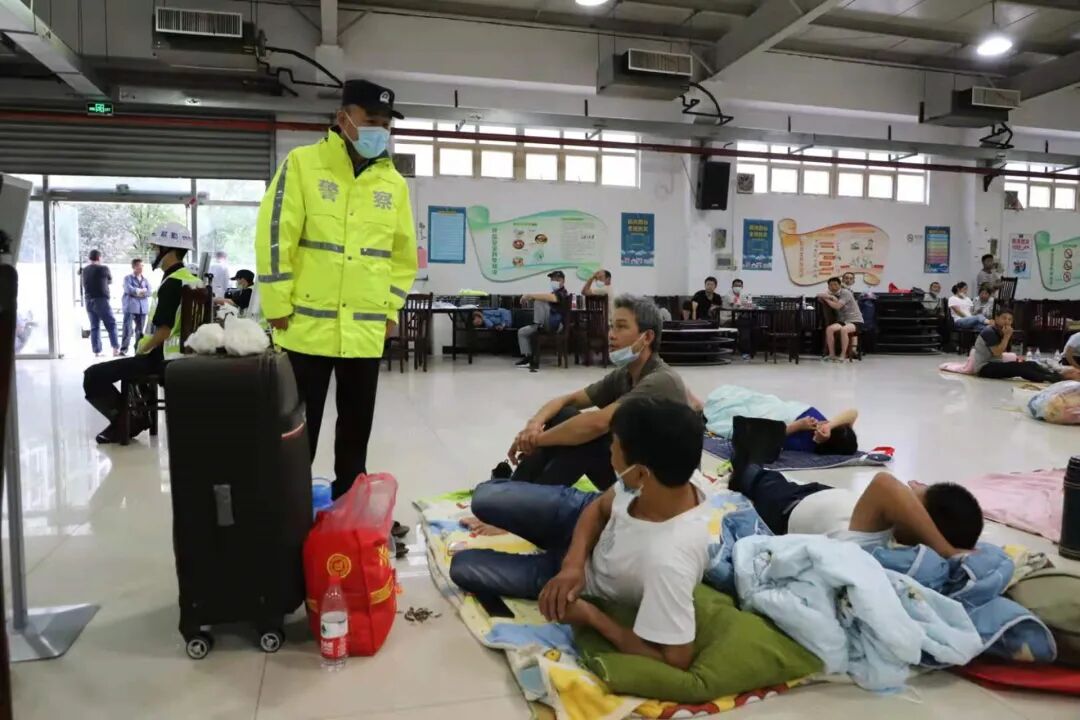 昨日因为台风撤离的群众也踏上了回家的路途。