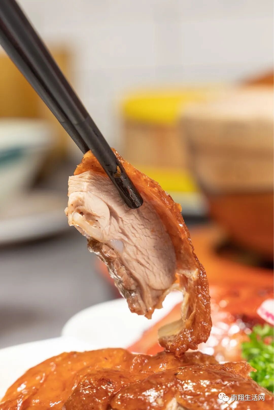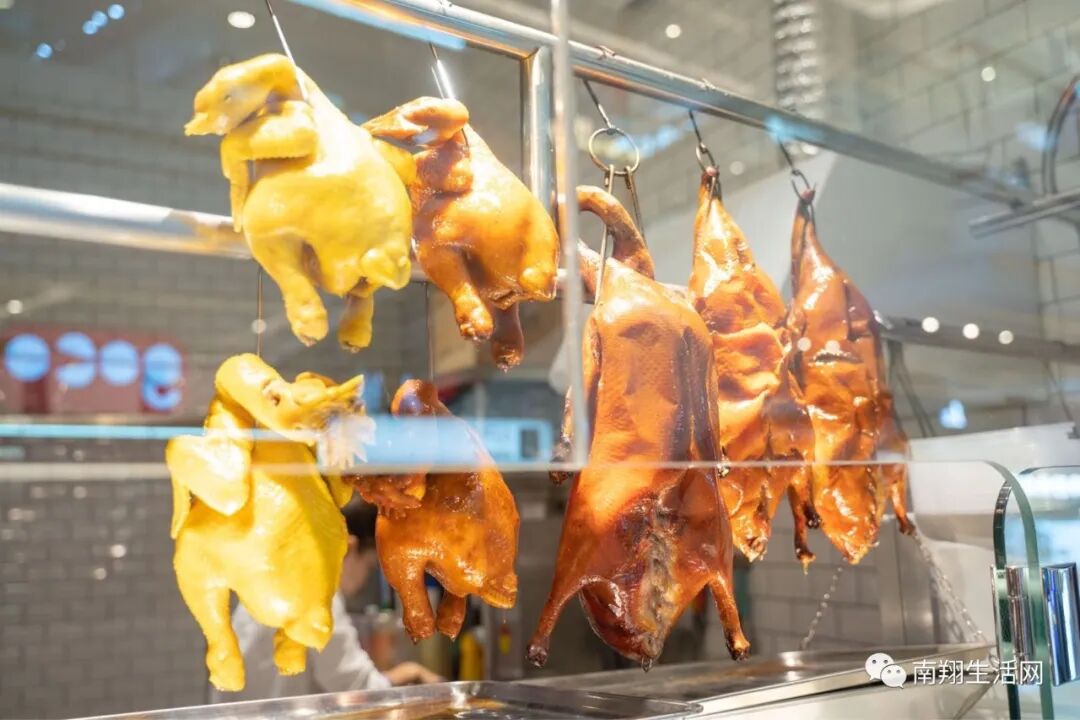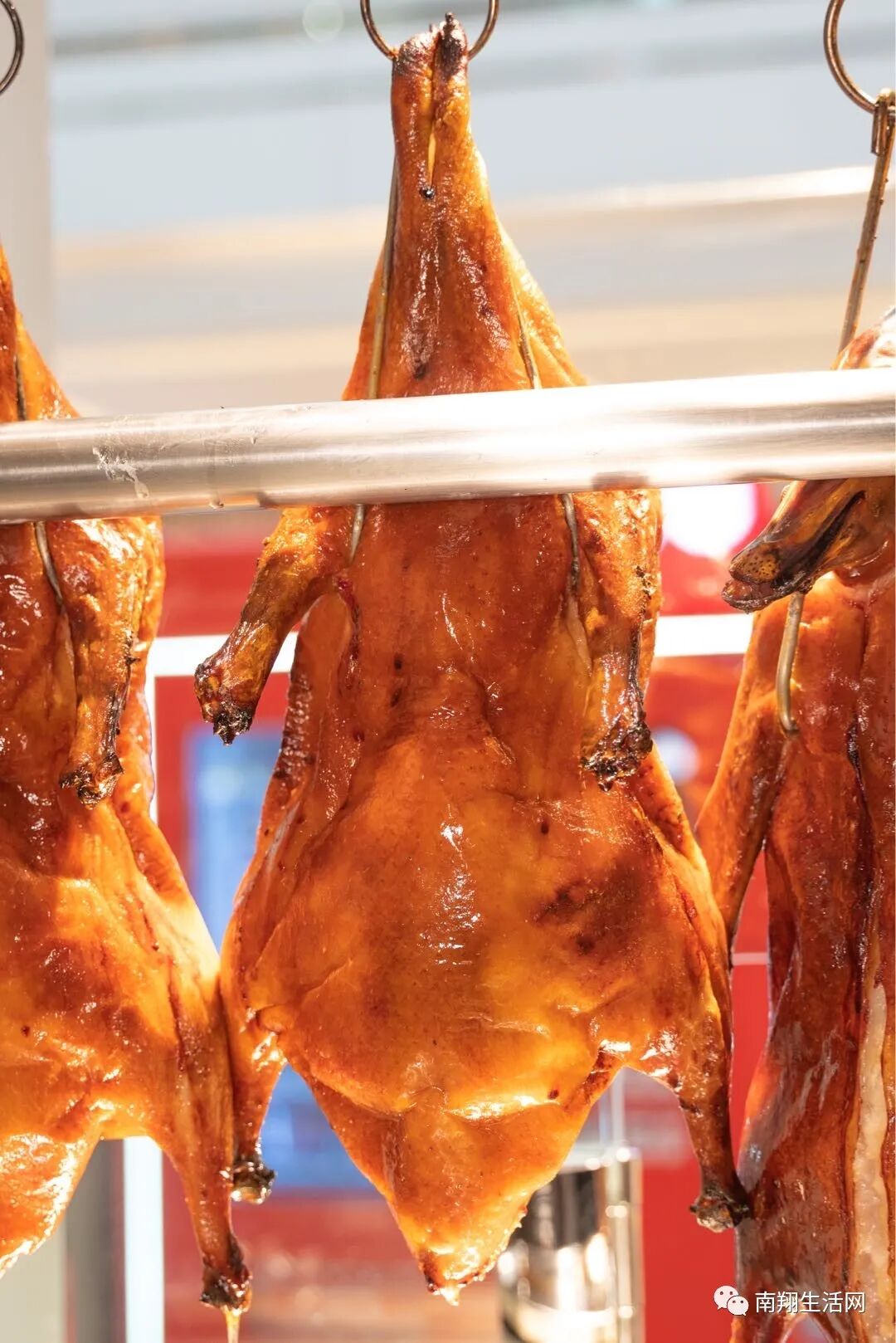 明档的橱窗,所有烧腊都被挂在这里展示,每一只都烤得金黄酥脆,带着些纯正的鸭油,闪烁着金黄的色泽。