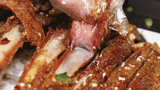 再用小刀割开肥嫩的羊肉,汁水饱满,香气四溢