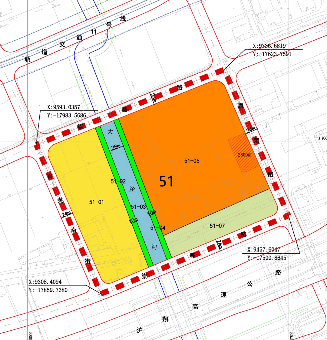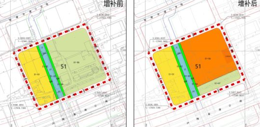 (1)将51-05地块划分为51-06、51-07两个地块 (2)51-06地块用曲面积为50901米方米,增补为教育科研没计用曲(C6),容积率为3.0,建筑高度为50米。   (3)51-07比块用比面积为10590半方米,保持原有用地性质(X)。此外, 51-06比块打造开放活力街区,于地块内设置不小于2500米方米的公共开放空间,24小时对公众开放。