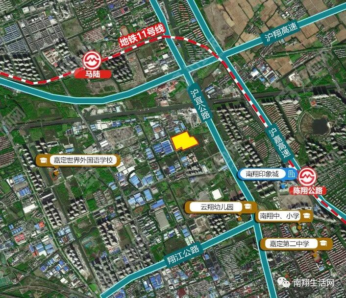 地块距离11号线陈翔公路站直线1.5公里左右,附近有嘉闵高架、沪嘉高速、沪翔高速等交通网络。