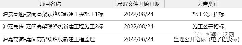 今日发布的沪嘉-嘉闵联络线相关招标文件共有三个,分别是施工1标和2标以及新建工程的监理标。