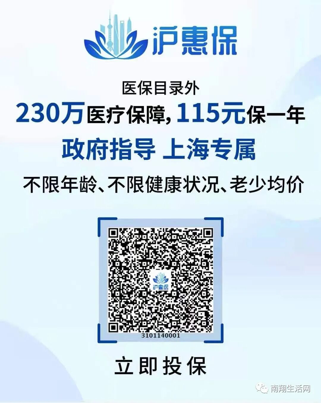 刚刚发布!上海全民大福利!不限年龄、户籍、健康状况!医保账户就能买!115元/年,最高保障230万元