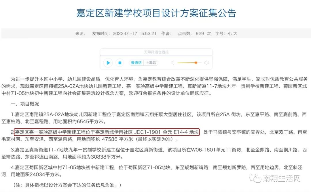 - 2022年的第55天 -嘉定明日天气:晴 16℃/4℃ 刚刚,南翔生活网小编 从嘉定发改委获悉: 嘉定新城E14-4地块高中新建工程 项目建议书获得批复 关…