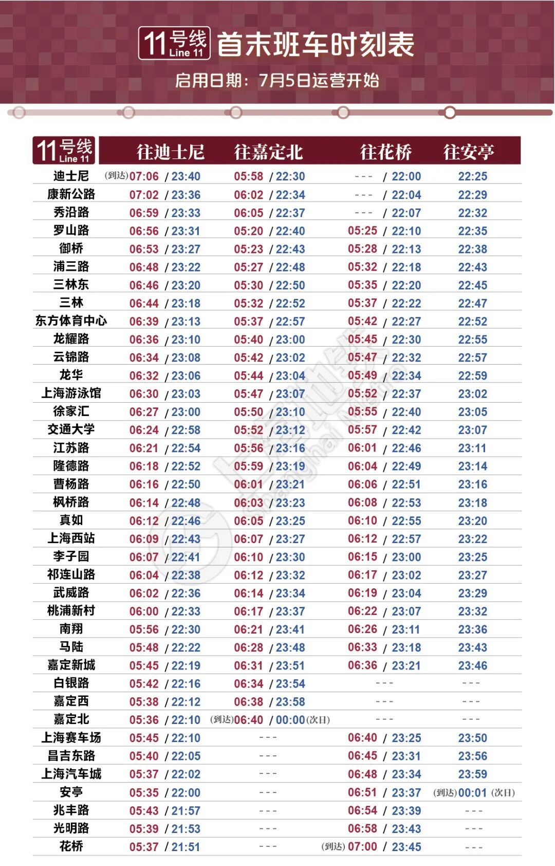 此次11号线启用新图后,各站点首末班车时间也将调整(具体各站点首末班车时间请见图),乘客应留意首末班车时间及枢纽站换乘时间变化,以免耽误出行。