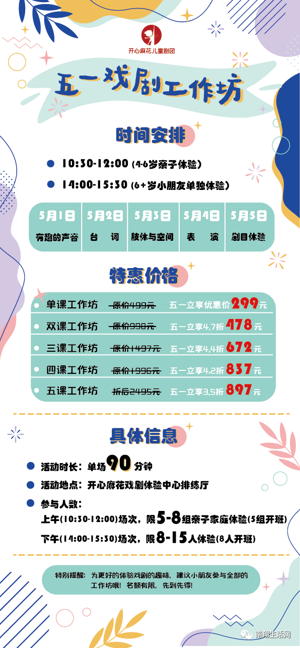 开心麻花儿童剧团五一戏剧工作坊来咯!
