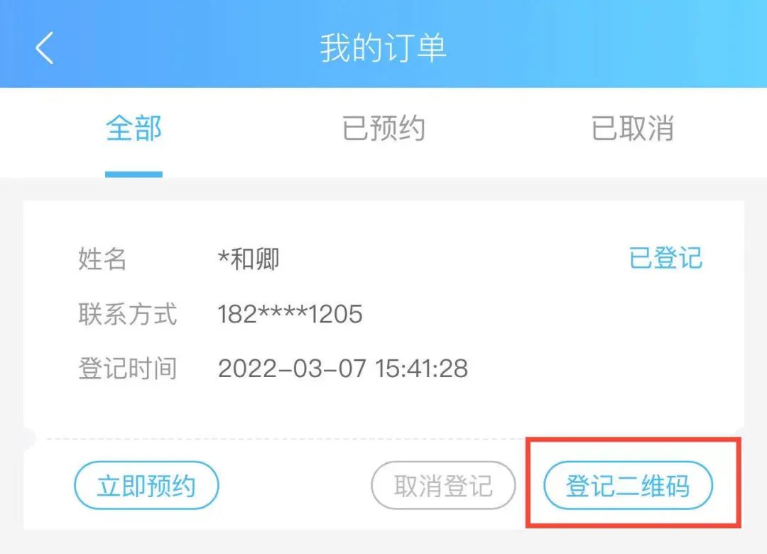 选择对应登记人,点击【登记二维码】