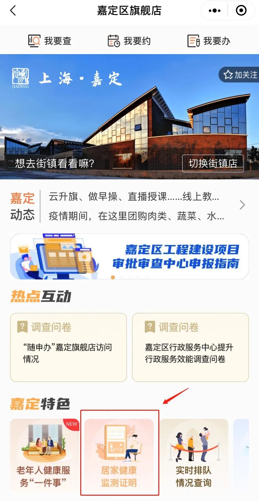所在小区根据疫情防控需要实行闭环管理,如何开具“居家健康监测证明”?小嘉今日获悉,“居家健康监测证明”在线开具服务在“随申办”嘉定旗舰店上线啦,居民只需动动手指就能获取~