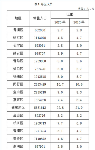 官方数据!上海常住人口24870895人!嘉定增幅最大!