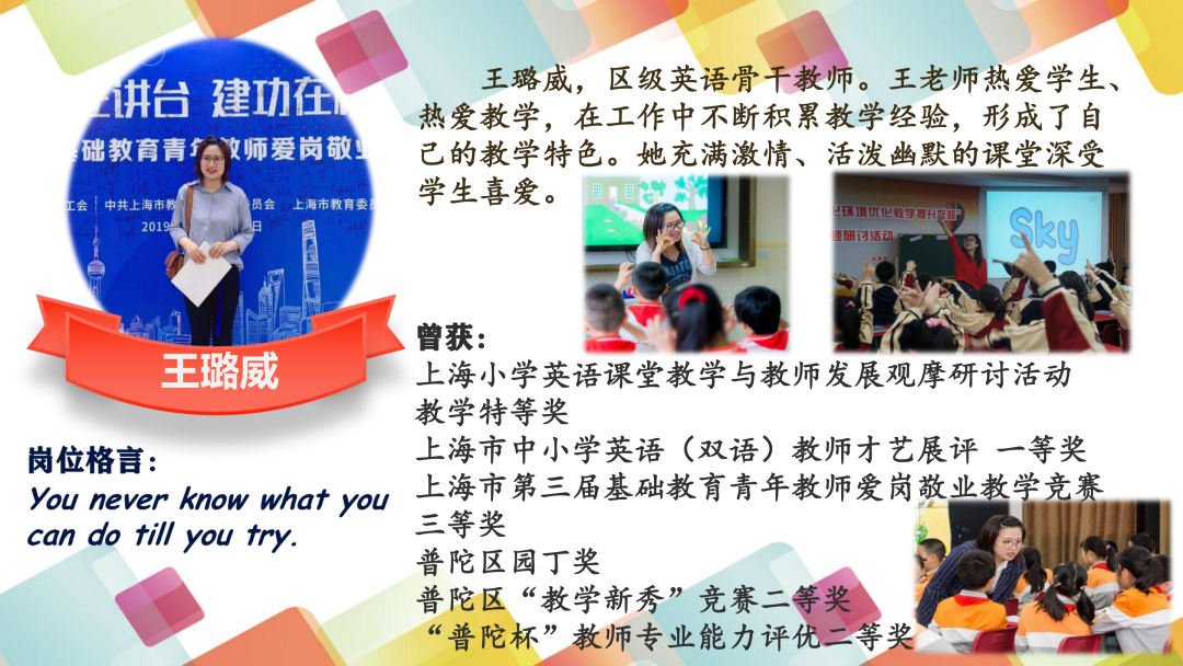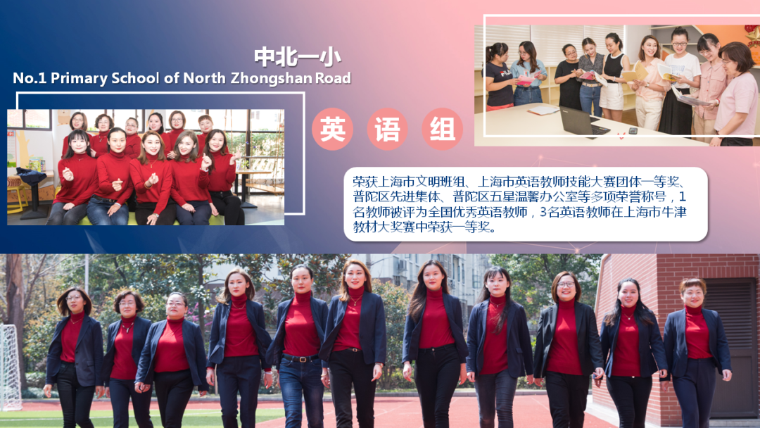 学校先后有3名教师成为普陀区名师工作室领衔人,10多名教师荣获全国、市区教学评比一等奖。语文、数学、英语、信息技术、体育团队分别荣获上海市“三八”红旗集体,巾帼文明岗、文明班组、区信息、创新团队等20多项荣誉称号。学校荣获上海市教师专业化发展优秀校和上海市模范教工小家的荣誉称号,成为华东师范大学教育硕士实习基地校、上海市见习教师规范化培训基地校。