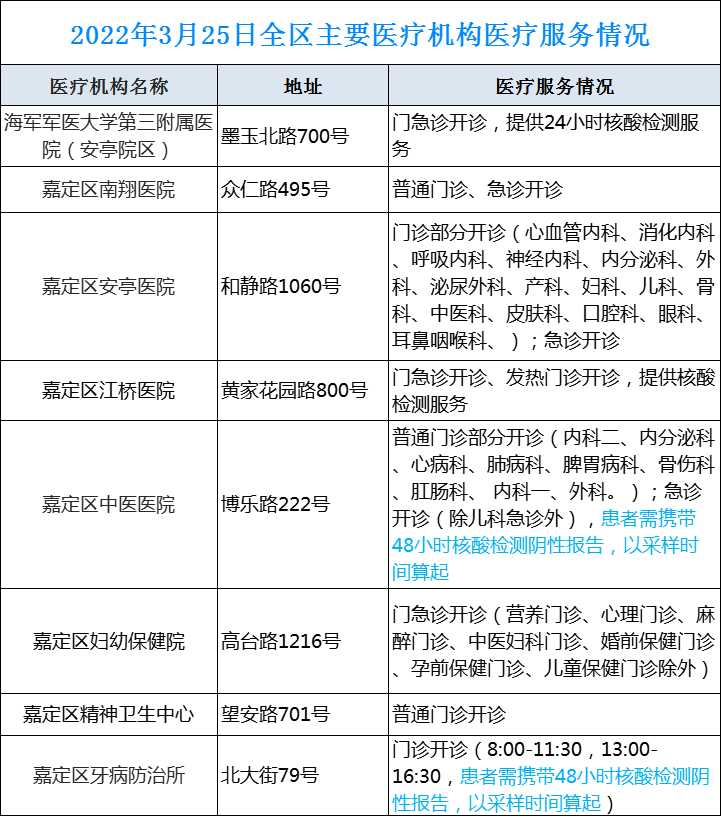 【关注】3月25日嘉定主要医疗机构医疗服务情况