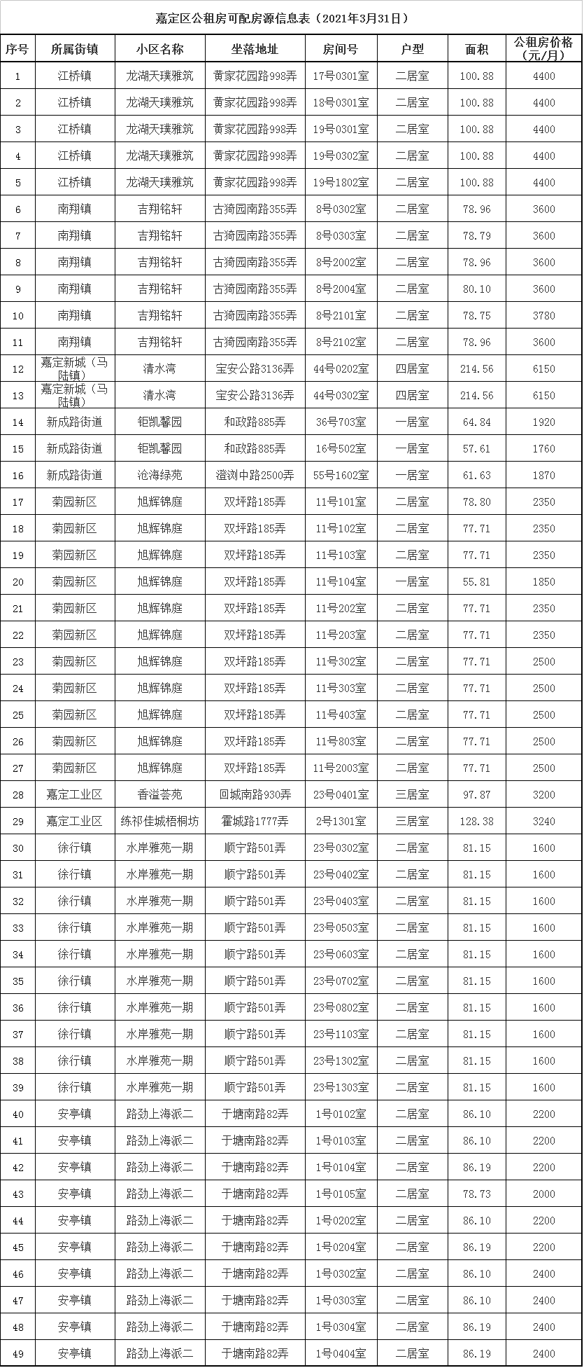 【关注】嘉定区公租房可配房源信息表最新出炉!