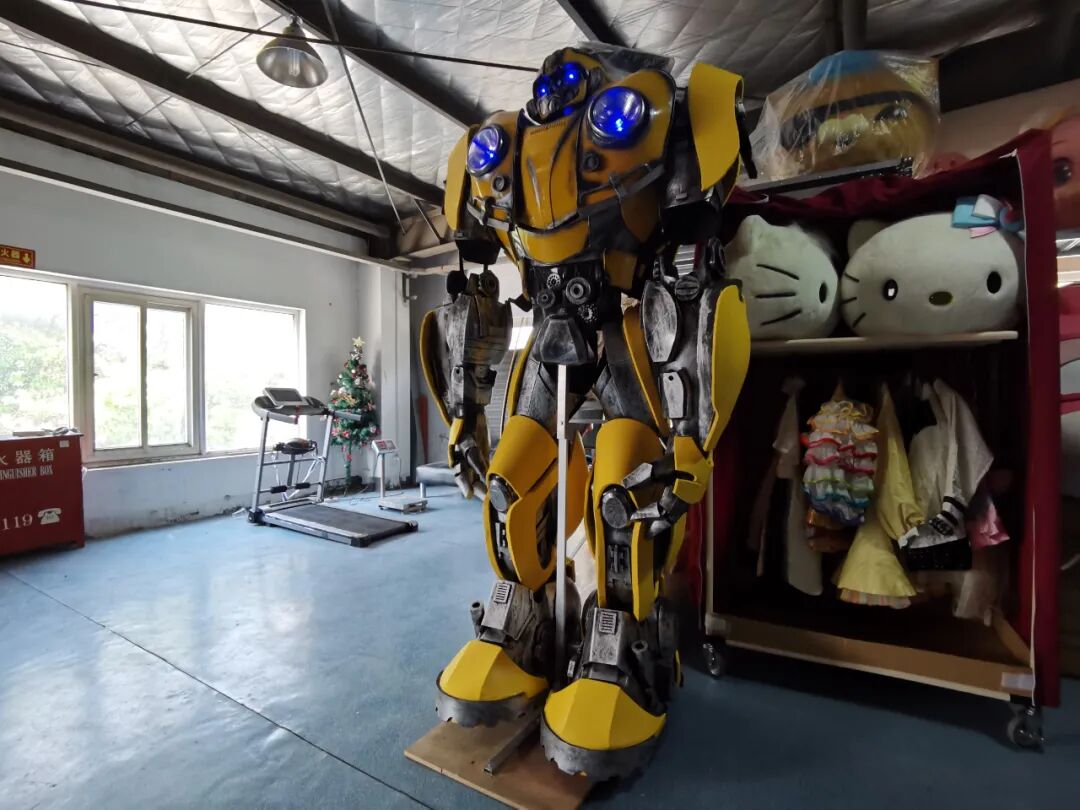 为了增加效果,张先生在大黄蜂内部还安装了发声器和简易的灯光,让机器人看起来更加逼真。