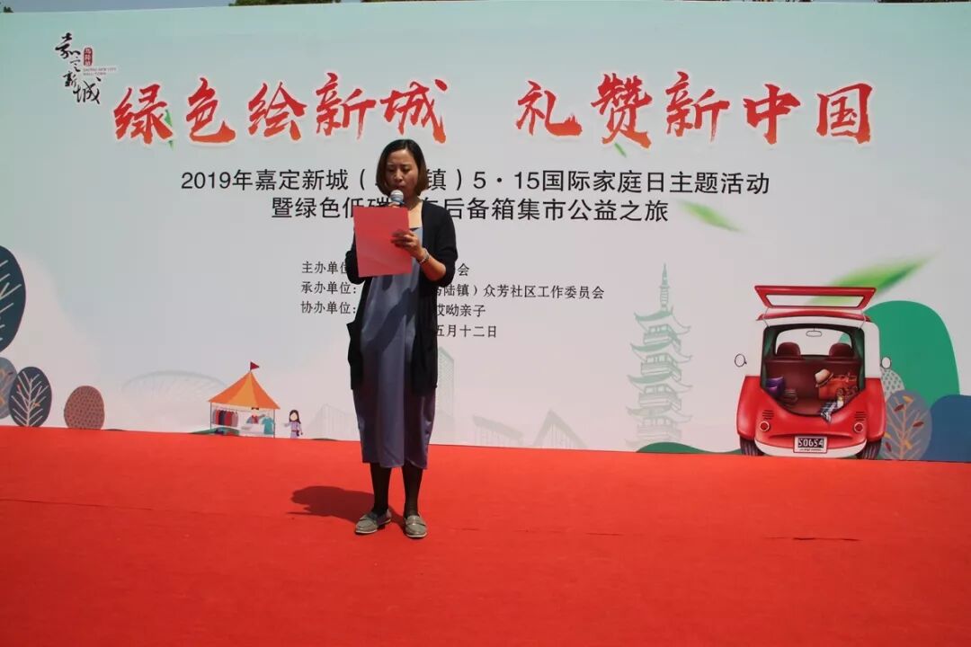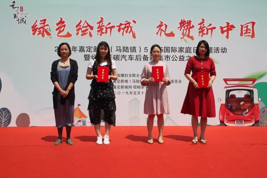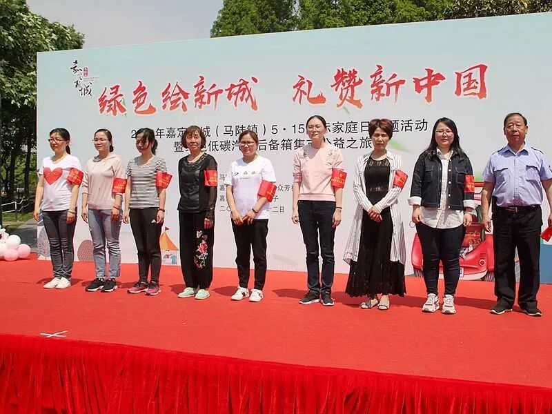 马陆镇妇联开展“绿色绘新城  礼赞新中国”2019年嘉定新城(马陆镇)5·15国际家庭日主题活动暨绿色低碳汽车后备箱集市公益之旅,招募了两百余组亲子家庭,进行亲子后备箱集市活动,将家里闲置的旧物,或者亲手制作的糕点、DIY的小玩具等,通过置换或者售卖的方式,变废为宝,物尽其用,从源头减少垃圾、废物的产出量,从小养成环保节约的好习惯,从众多优秀家庭中评出了9组家庭获得荣誉表彰(绿色低碳家庭奖、交易量最高家庭奖和环保公益家庭奖获奖家庭);活动中成立嘉定新城(马陆镇)垃圾分类家庭志愿者队伍成员并授予红袖章;由优秀家庭代表宣读垃圾分类倡议书,号召全镇家庭积极参与垃圾分类,营造生活垃圾分类的良好氛围,为嘉定新城打造创新活力之城、全力提升城市能级和核心竞争力贡献家庭之力。