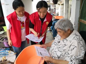 村垃圾分类志愿者来到村宅后,对照着宣传小报上的知识对村民们进行了细致的垃圾分类知识普及,志愿者把她们日常生活中常见的垃圾一样一样进行解读,并仔细讲解根据垃圾桶的不同颜色分别应对应投放何种垃圾。