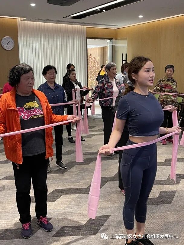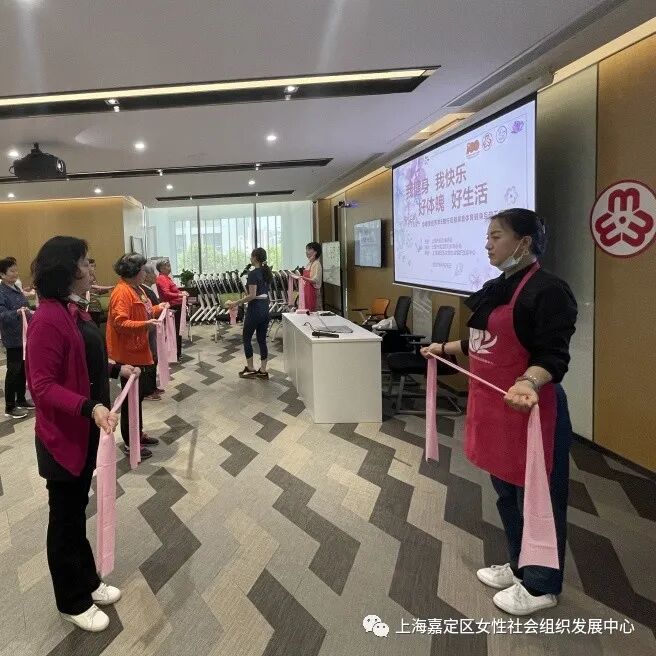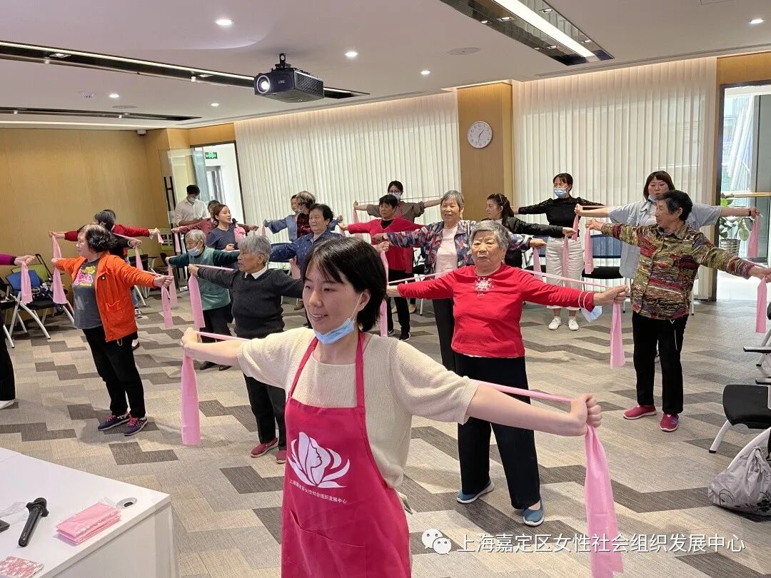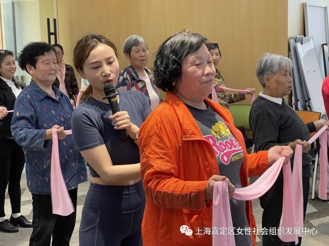 点击上方“蓝字”关注我们  为了丰富三八红旗手的老年生活,帮助其提升身体素质,4月26日下午,“巾帼情 绽芳华E旗行”项目在洪德路50号嘉定区女性社会组织发展中…